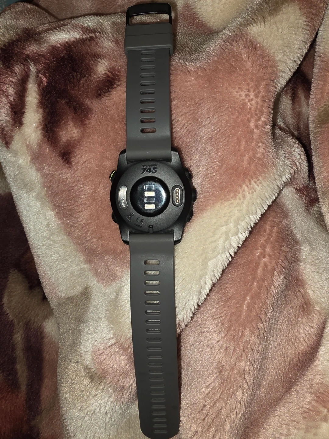 Selling a Garmin Forerunner 745 GPS running watch in grey. It's a great watch for tracking your runs and other activities. There are some scratches on the screen.