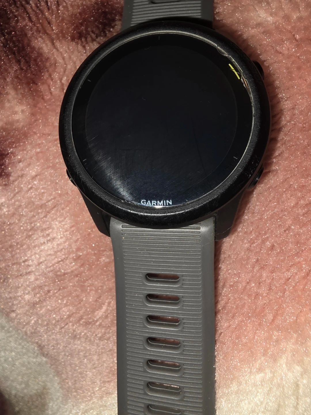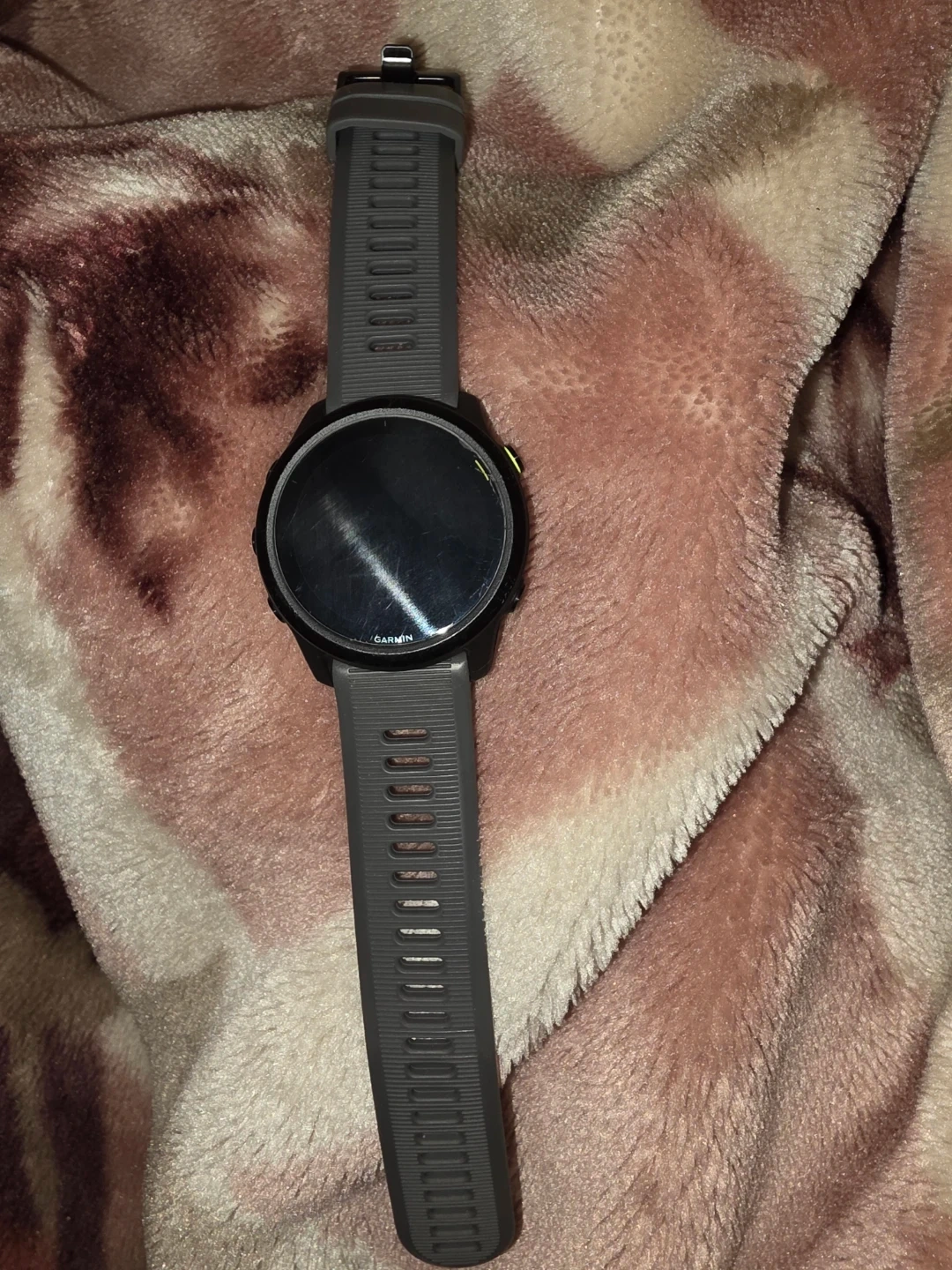 Selling a Garmin Forerunner 745 GPS running watch in grey. It's a great watch for tracking your runs and other activities. There are some scratches on the screen.