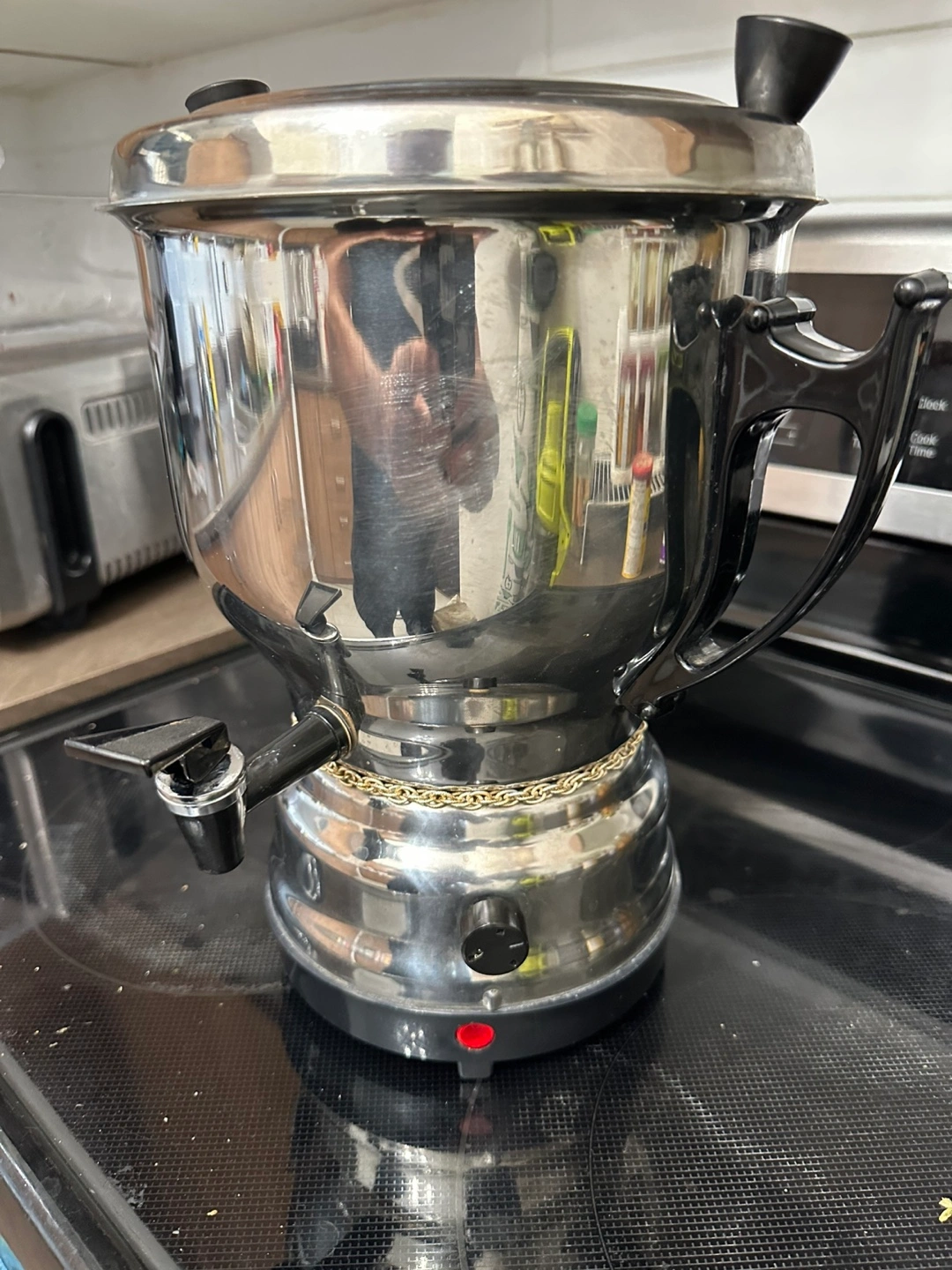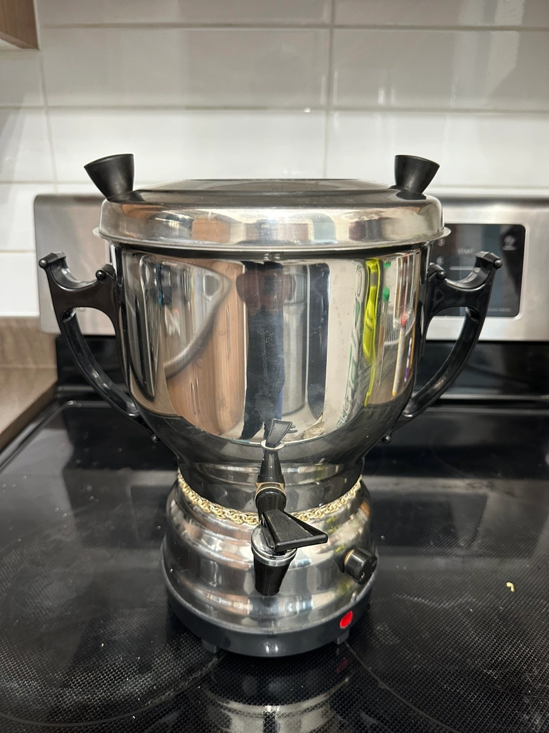 Selling a Hoberg stainless steel coffee urn. It's in used condition with some signs of wear, but still works great. Perfect for gatherings or events where you need to serve a lot of coffee!