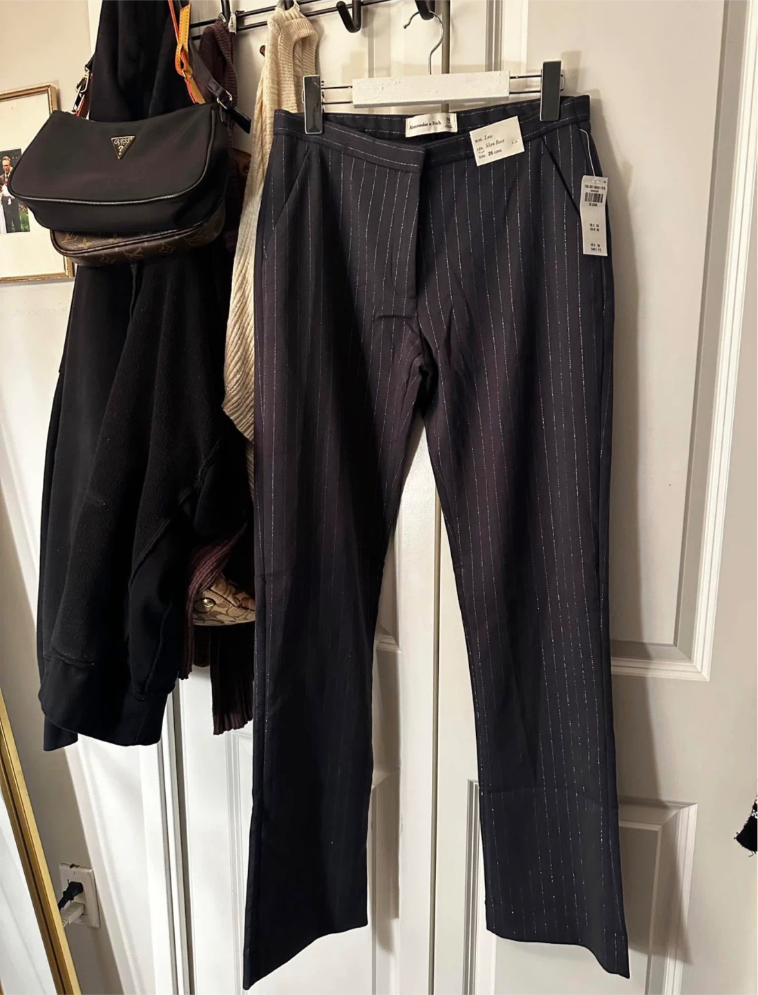 Selling a pair of Abercrombie & Fitch pinstripe slim boot pants in size 26 Long. They are in great condition and ready for a new wardrobe! Retails for $112+ tax