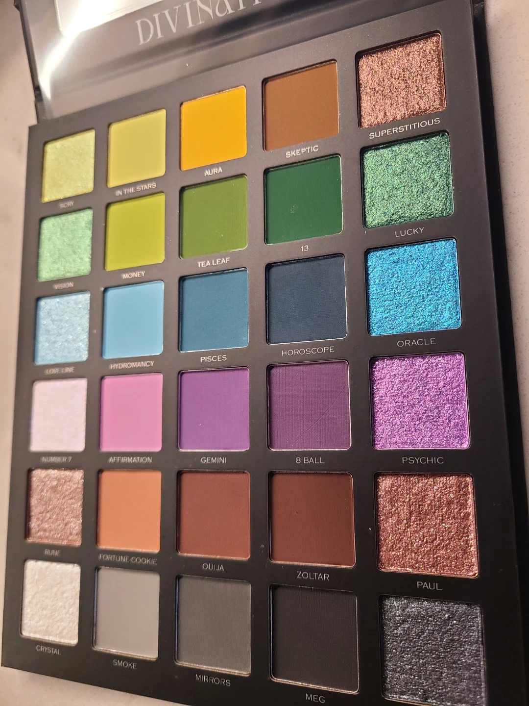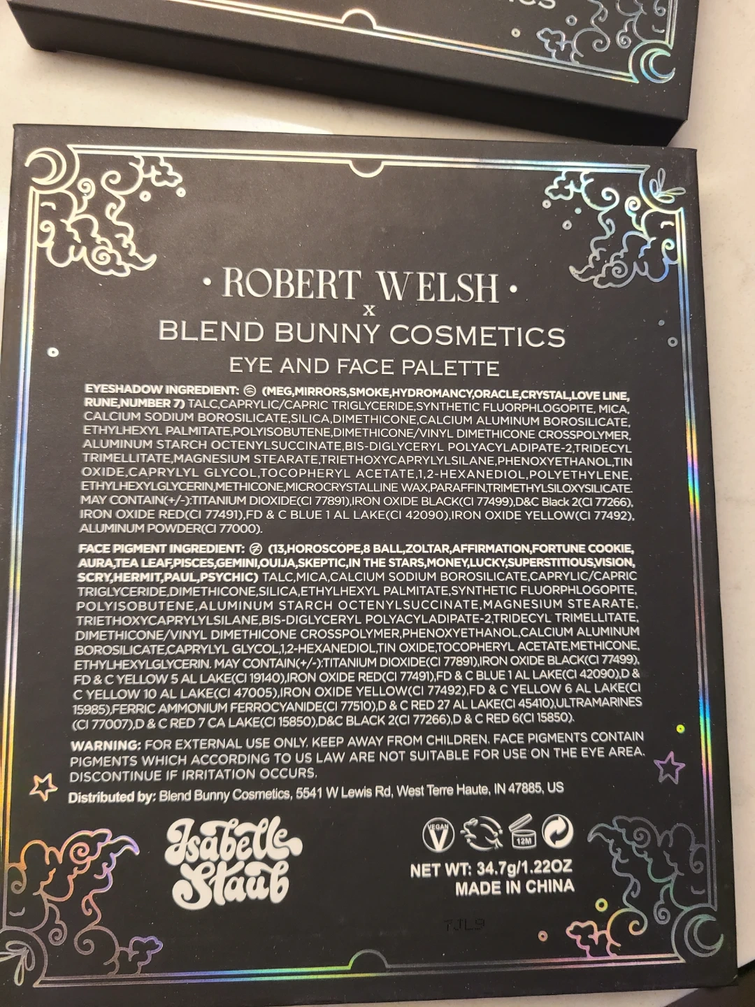 Divination Eyeshadow Palette by Blend Bunny Cosmetics. It features a variety of colourful eyeshadow shades with different finishes. The palette is part of a collaboration with Robert Welsh.