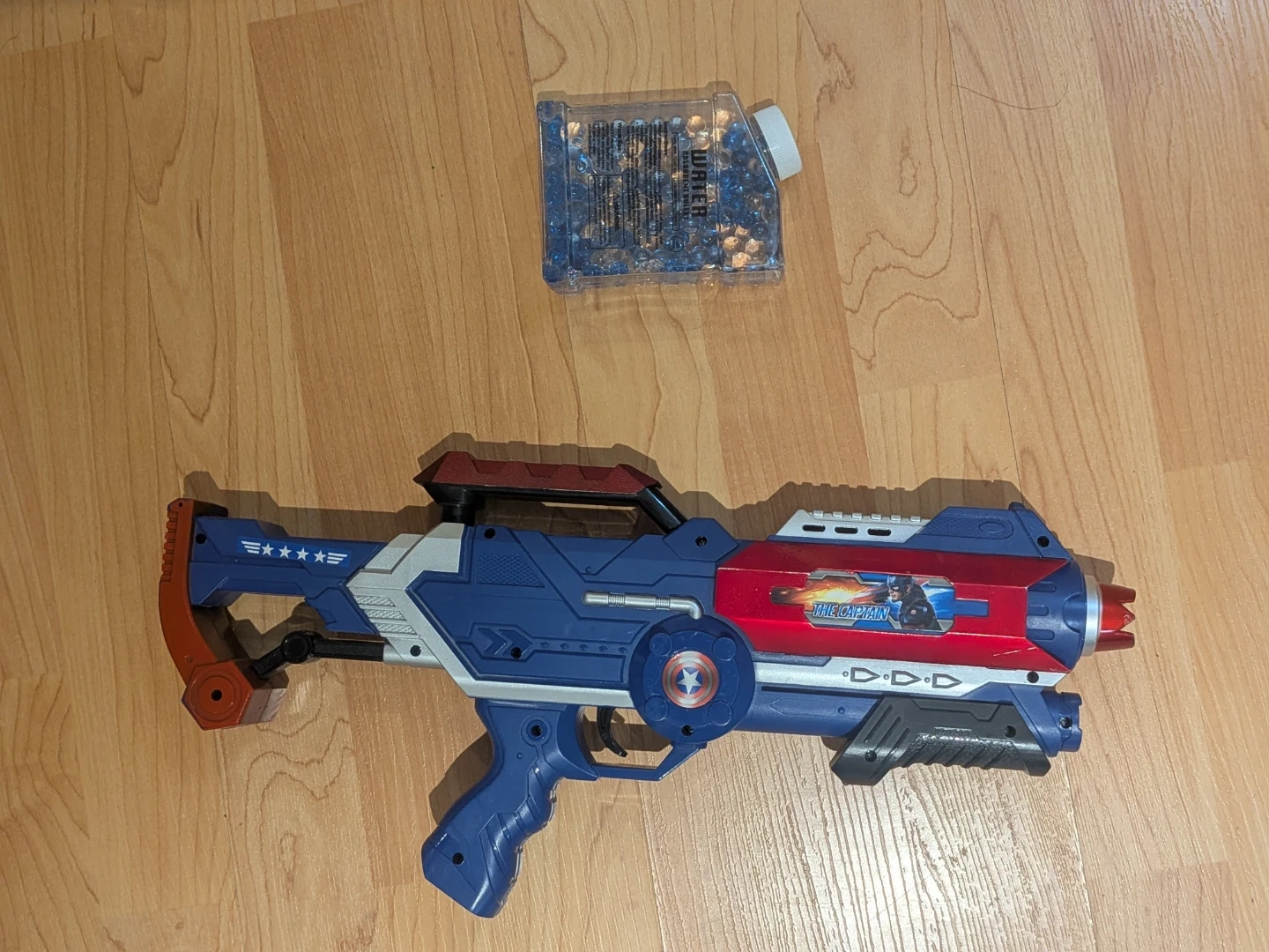 Buy & SellCaptain America Nerf and Water pellet gunCaptain America Nerf and Water pellet gun$10Captain America themed nerf gun which uses both bullets and water pellets.ConditionNewWHERE TO MEETCheck LocationView MapSELLERAahMeadowvale211 review0 chats·1 favorites·13 viewsSEND CHAT TO SELLERHi Aah! I’m interested in your listing.Hi Aah! I’m interested in your listing.Get the Karrot app to chatSign In to chat