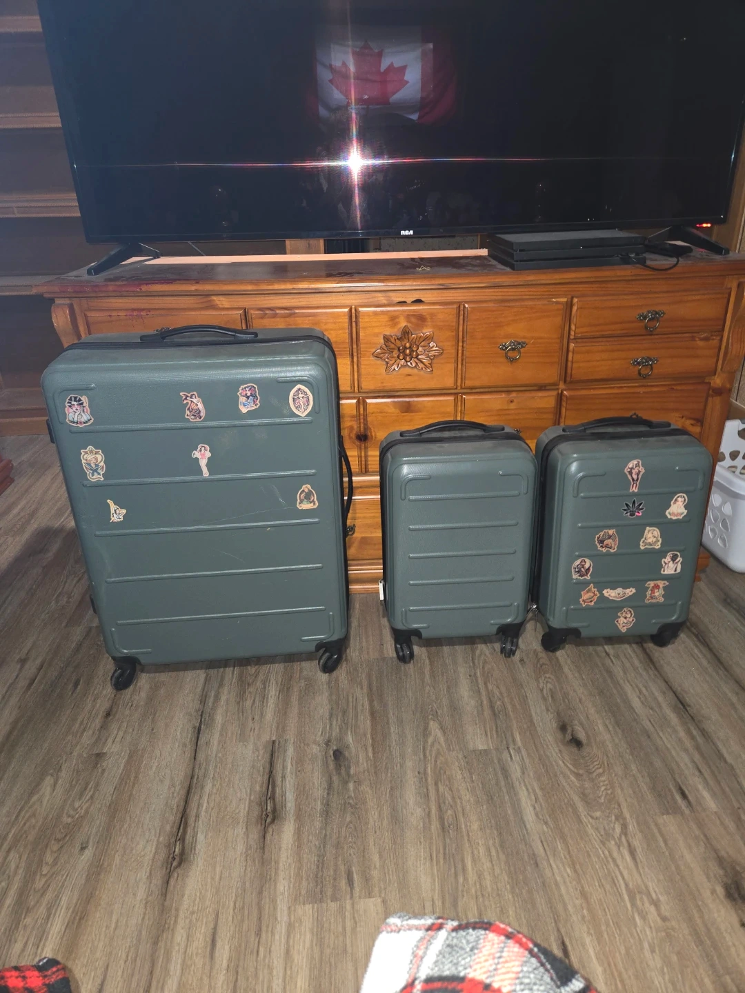Set of 3 Green Luggage Suitcases