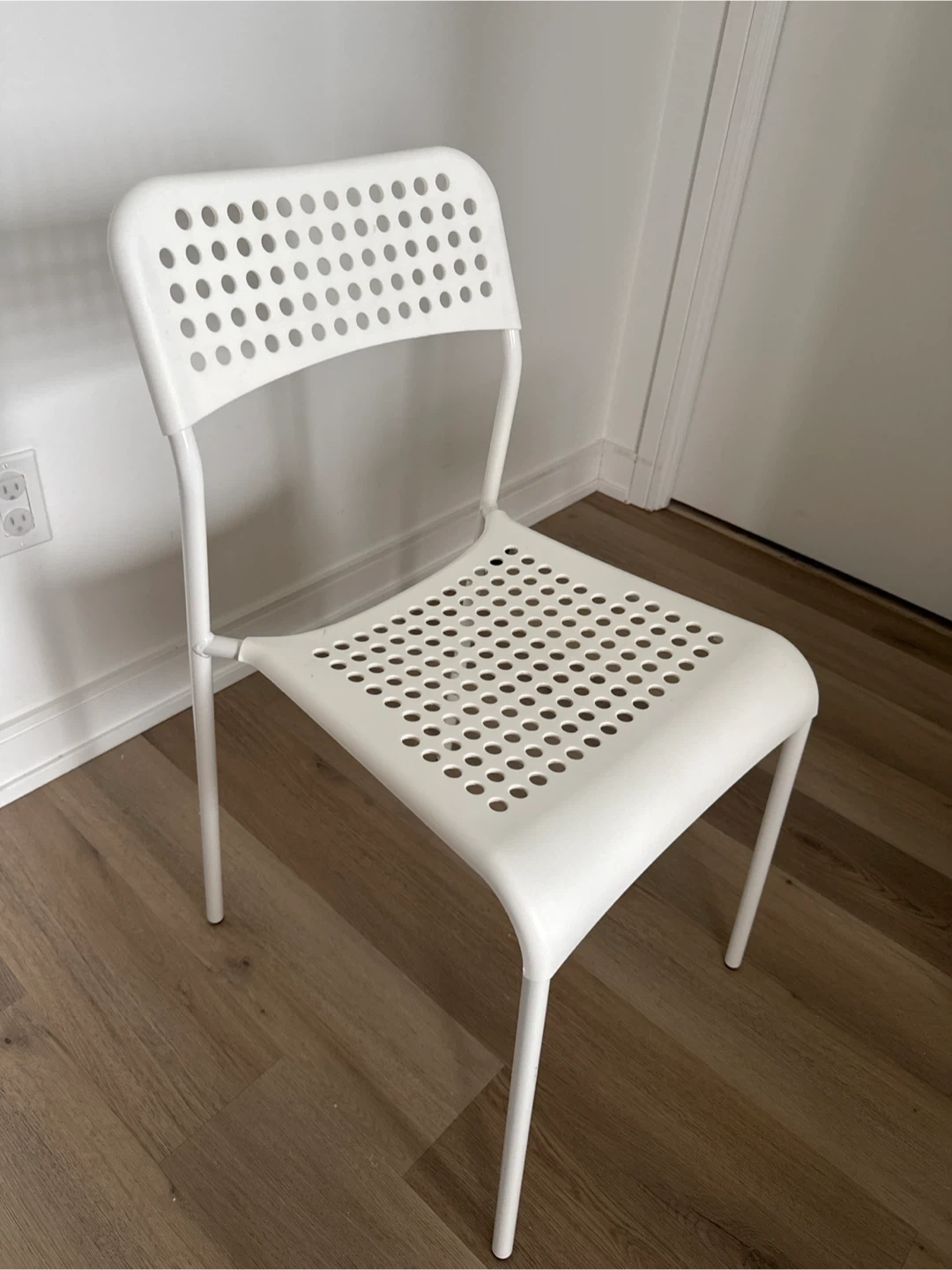 Selling two white IKEA VILMAR chairs in great condition. Clean, sturdy, and ready for a new home. Perfect for a dining room, kitchen, or office space.
