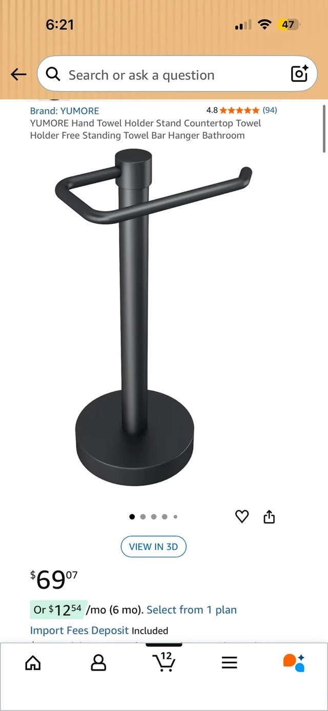 Keep your bathroom organized with this freestanding Yumore towel holder. It's in new condition, still in the box and unassembled! Features a freestanding design, sturdy base, and modern matte black finish. This sleek towel holder is ready to find its new home! If you're reading this, it's still available. Get ready to say goodbye to cluttered countertops!