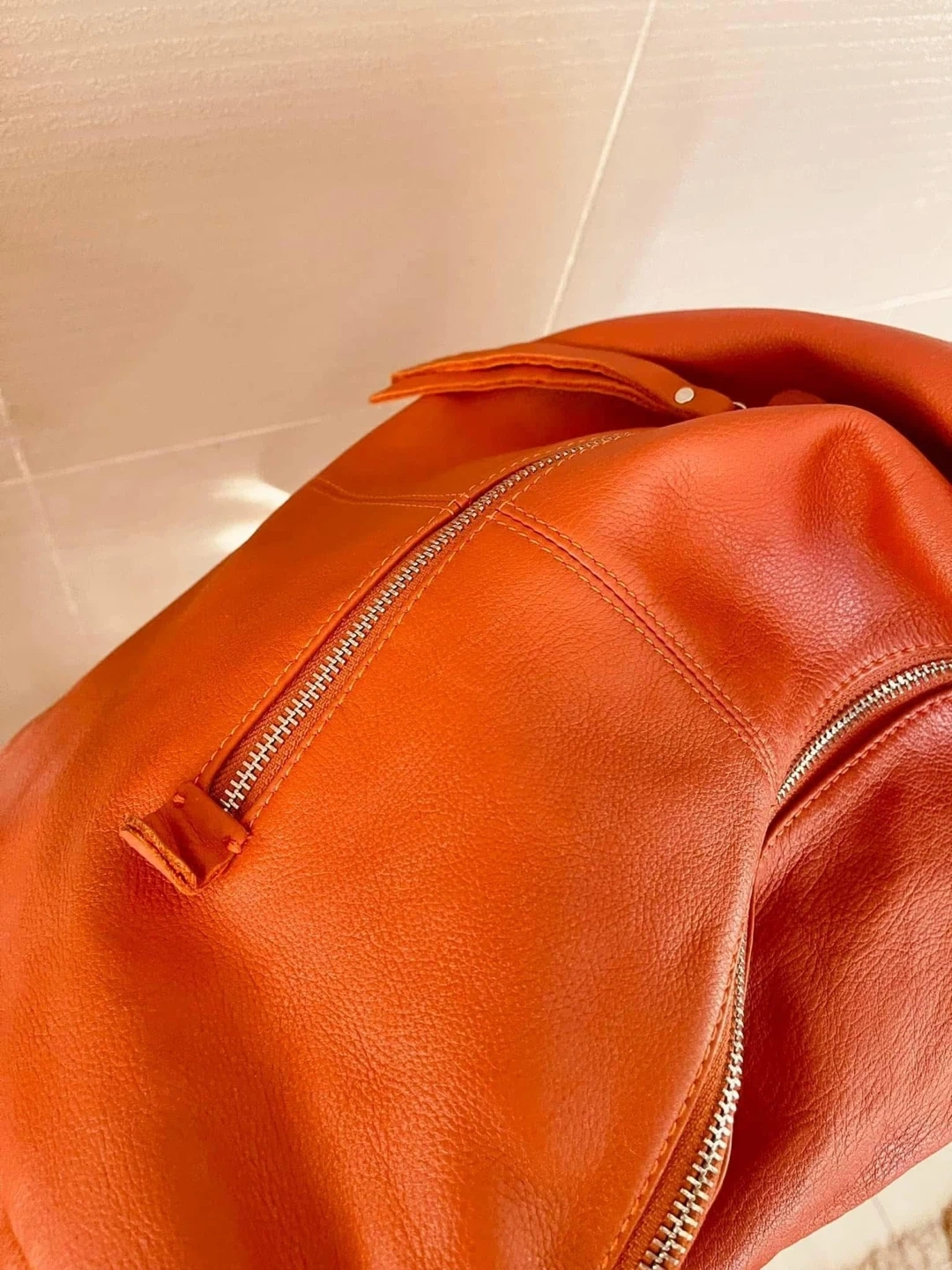 Orange Leather Hobo Bag