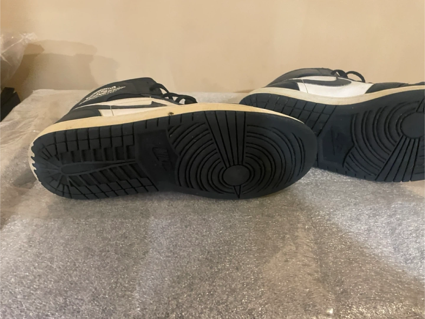 Selling a pair of Air Jordan 1 Mid basketball shoes in black and white. They've got the classic Jordan style and are ready for the court or everyday wear!