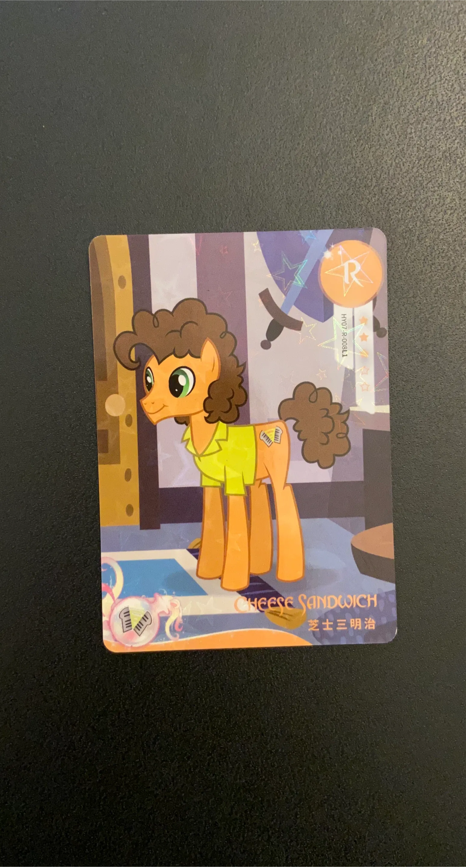 This is a My Little Pony trading card featuring Cheese Sandwich. The card has a collectible rating of 'R' and the code HY07-R-008L1. It's a fun collectible for fans of the series!