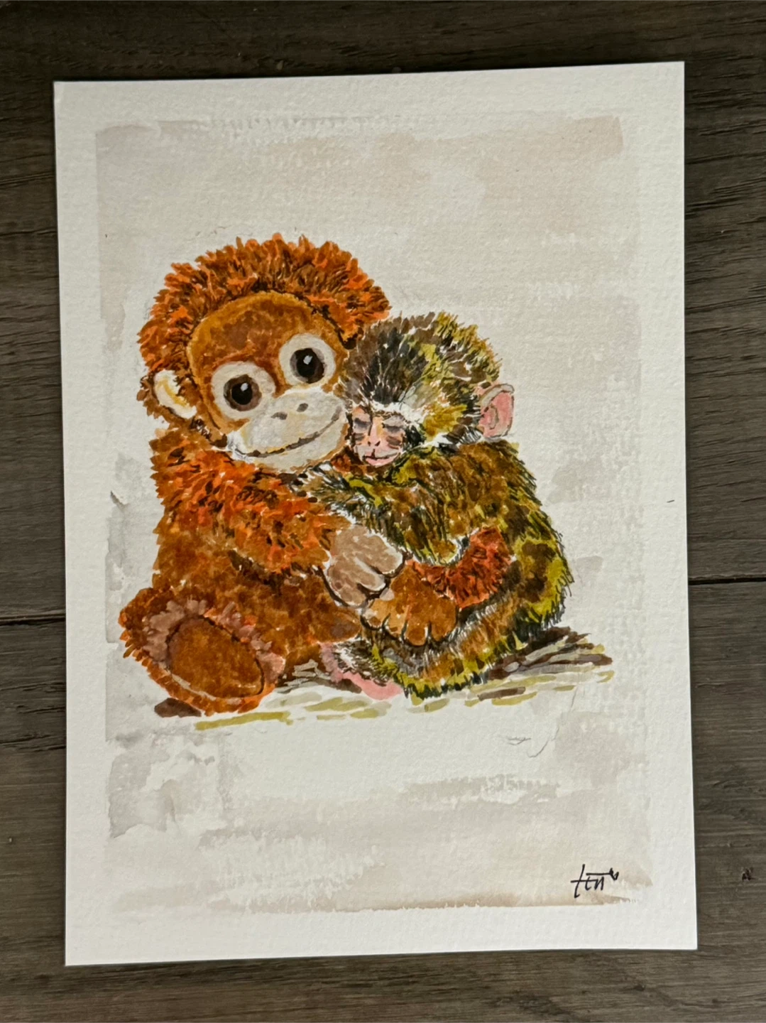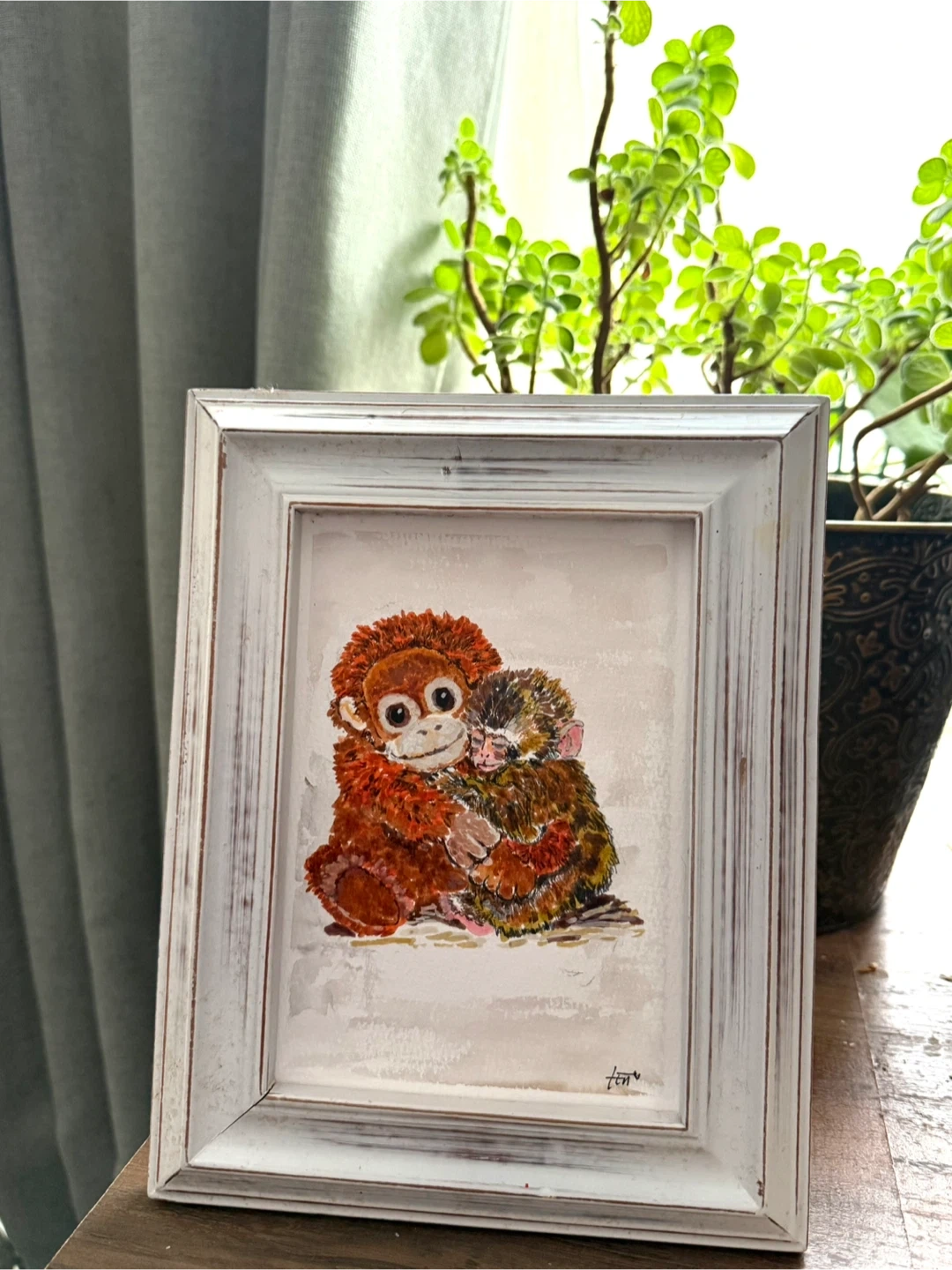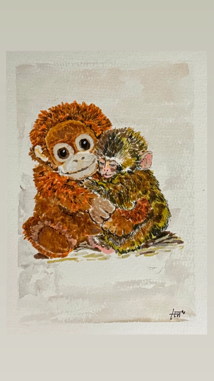 This is my mixed media art version of Punch the monkey who found comfort and belonging with his friend, the stuffed toy monkey. This is a heartwarming piece that carries all the emotions and life lessons in the story of Punch the monkey. For me, it reminded me of the power of a healing hug.
