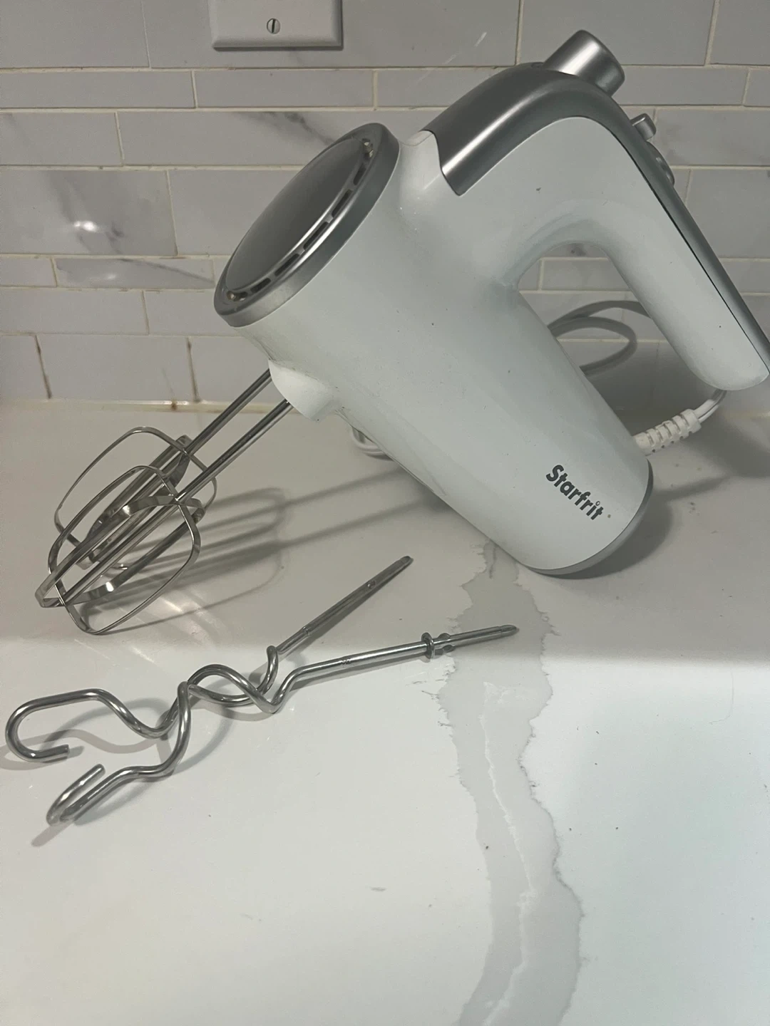 Selling because I am moving out. Gently used. In excellent condition. Comes with: Dough hooks, beaters, power cord.