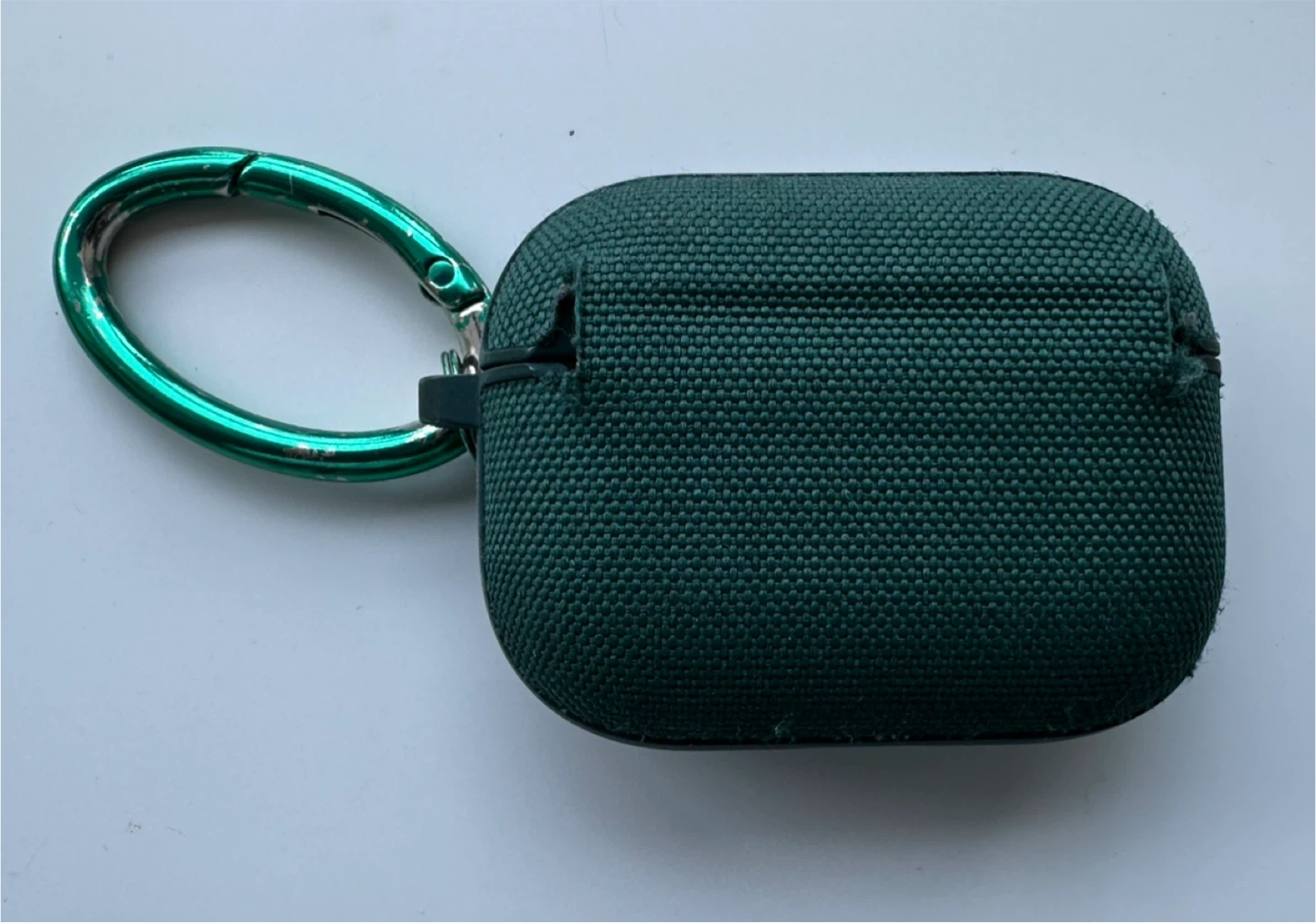 This Spigen case provides protection for your AirPods Pro. It comes with a green carabiner for easy attachment. The case is made of a durable fabric material.