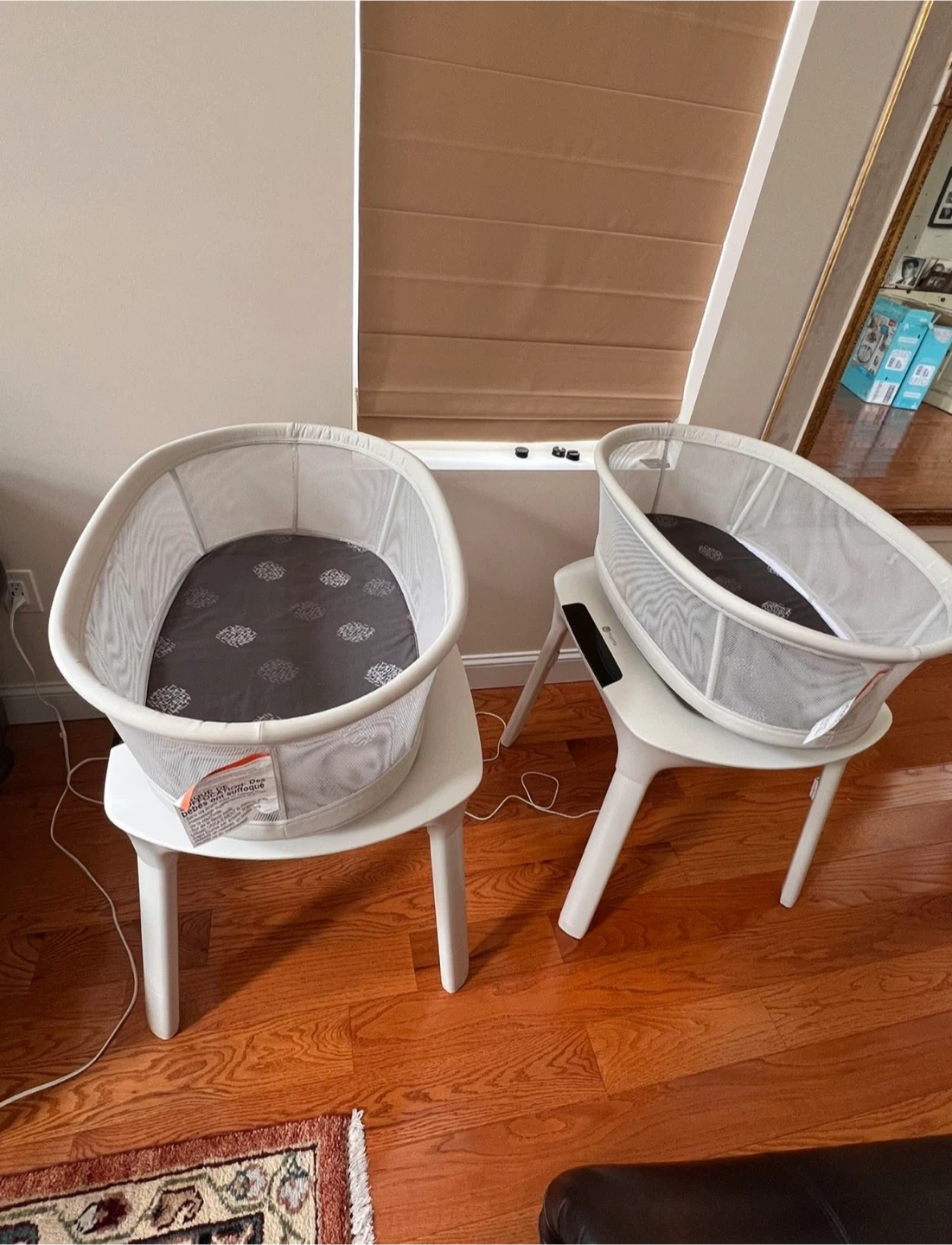 This 4moms bassinet is perfect for keeping your little one close. It features a mesh canopy for breathability and easy-to-clean fabric. Bassinet is lightweight and portable, ideal for travel or moving between rooms. $175 each.