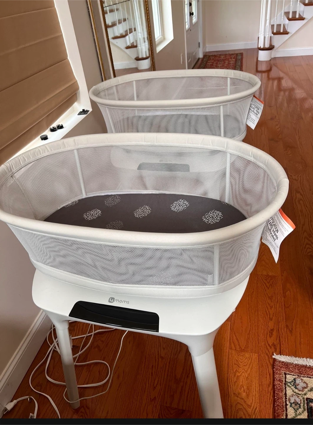 This 4moms bassinet is perfect for keeping your little one close. It features a mesh canopy for breathability and easy-to-clean fabric. Bassinet is lightweight and portable, ideal for travel or moving between rooms. $175 each.