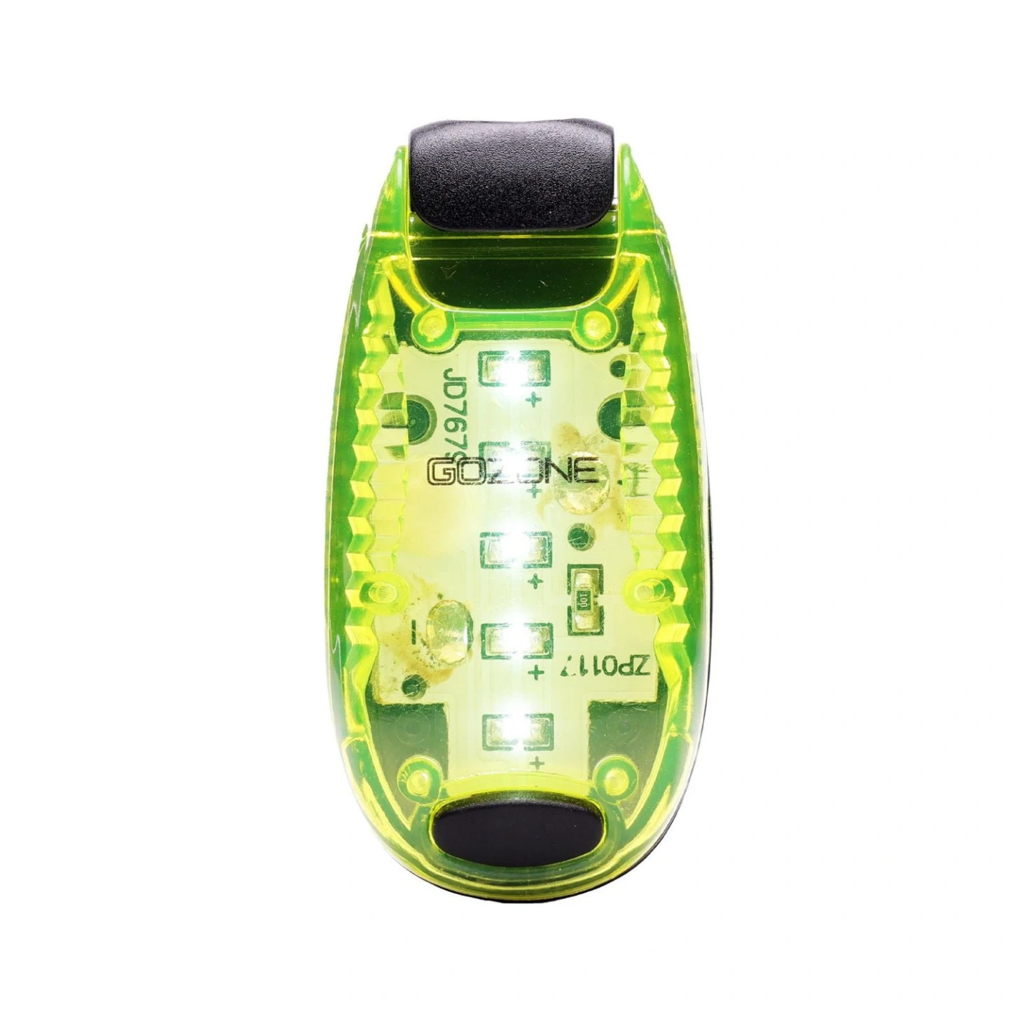 This GoZone clip-on light provides visibility. It's bright green and has a clip for easy attachment. It's great for nighttime activities.