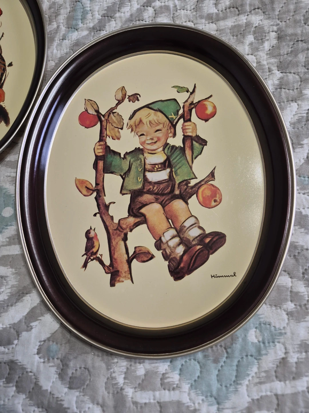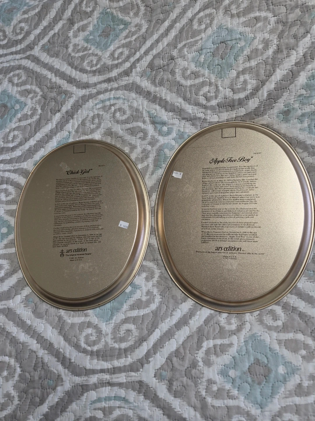 Pair of Vintage 1982 & 1983 Goebel Hummel "Chick Girl" & "Apple Tree Boy" Oval Metal Tin Trays by ARS in USA - each 14 1/2" x 11 1/2" Oval - Excellent Condition selling both together Please See all pictures