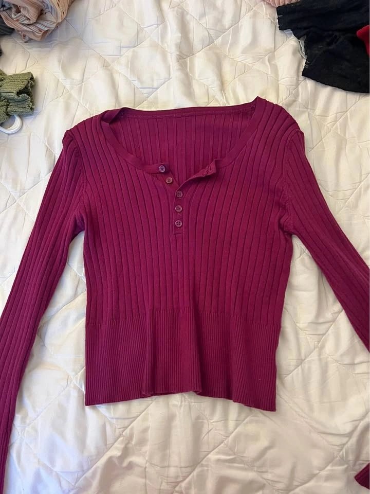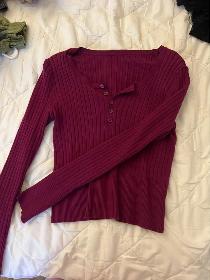 Buy & SellBurgundy/ deep Purple ribbed topBurgundy/ deep Purple ribbed top$7Looks more purple in person. Ribbed knit with buttons in front. Size medium.WHERE TO MEETCheck LocationView MapSELLERVanessaDowntown Toronto262 reviews0 chats·1 favorites·3 viewsSEND CHAT TO SELLERHi Vanessa! I’m interested in your listing.Hi Vanessa! I’m interested in your listing.Get the Karrot app to chatSign In to chat
