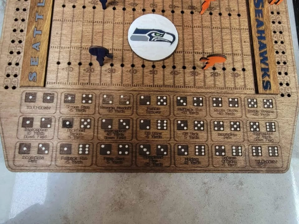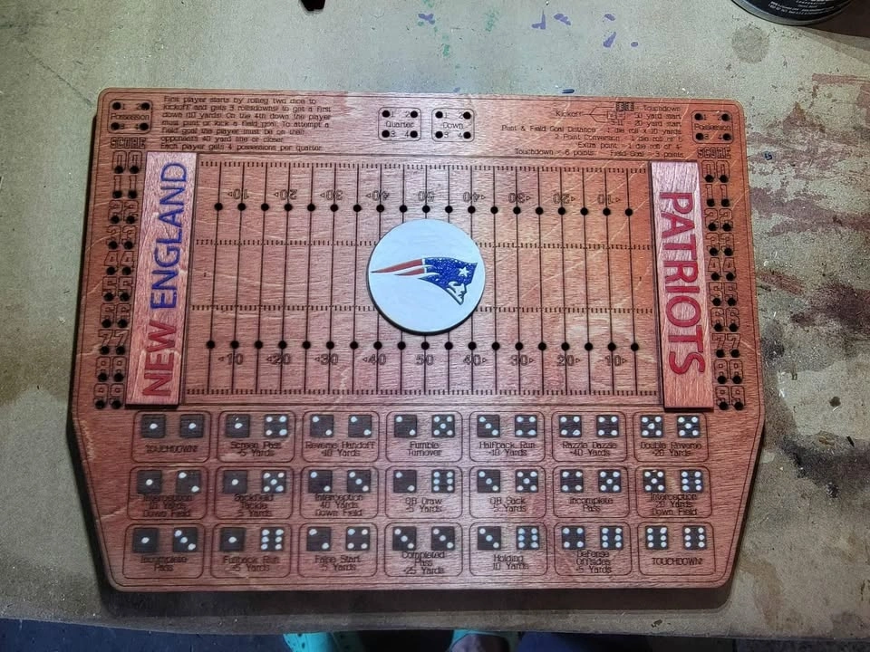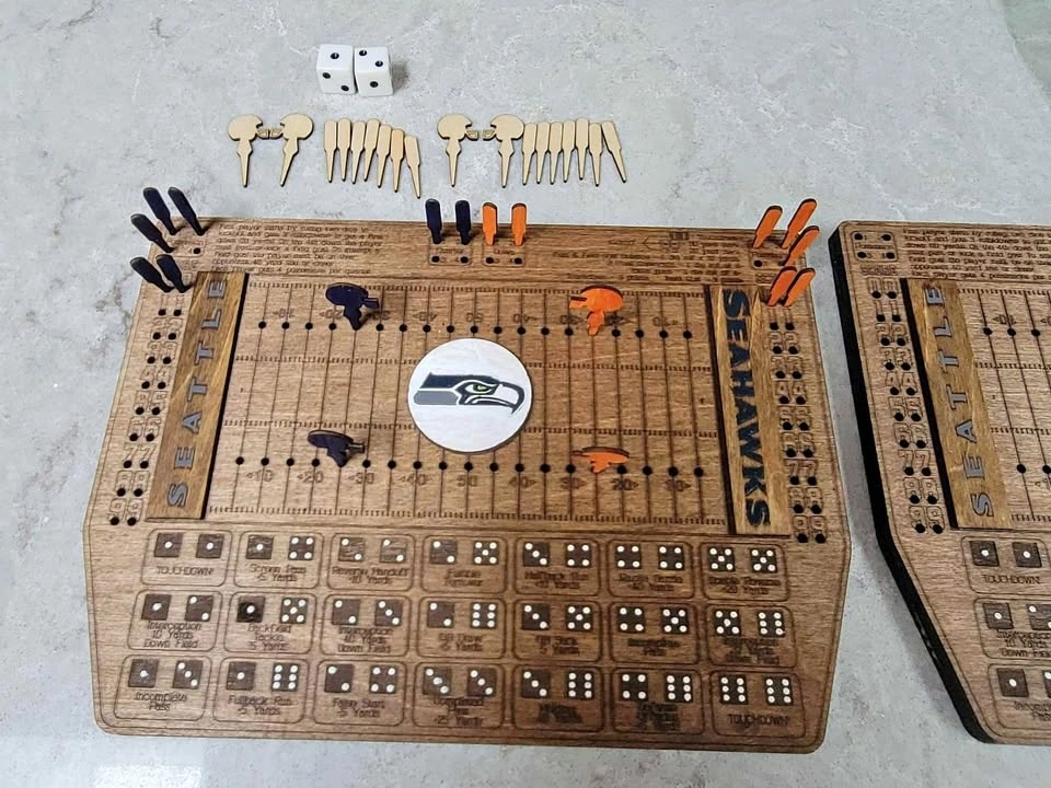 Laser Cut/Engraved Dice Football Board Game