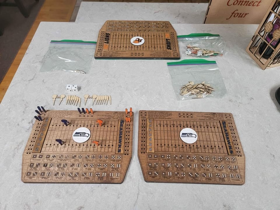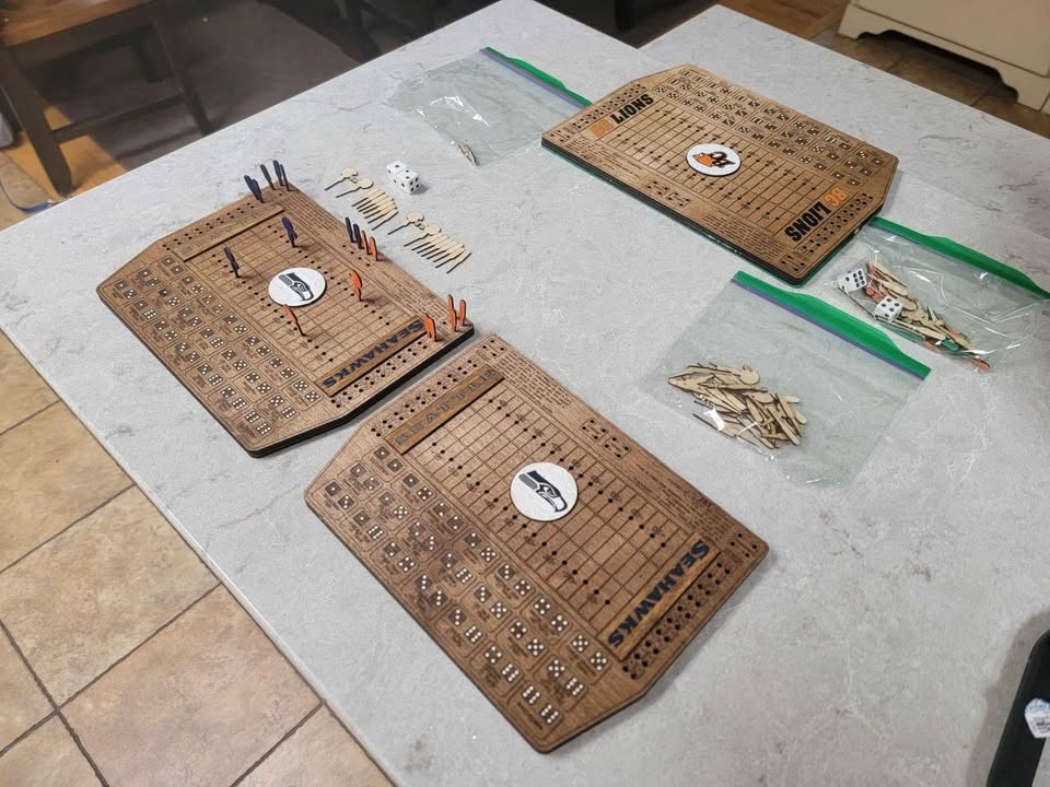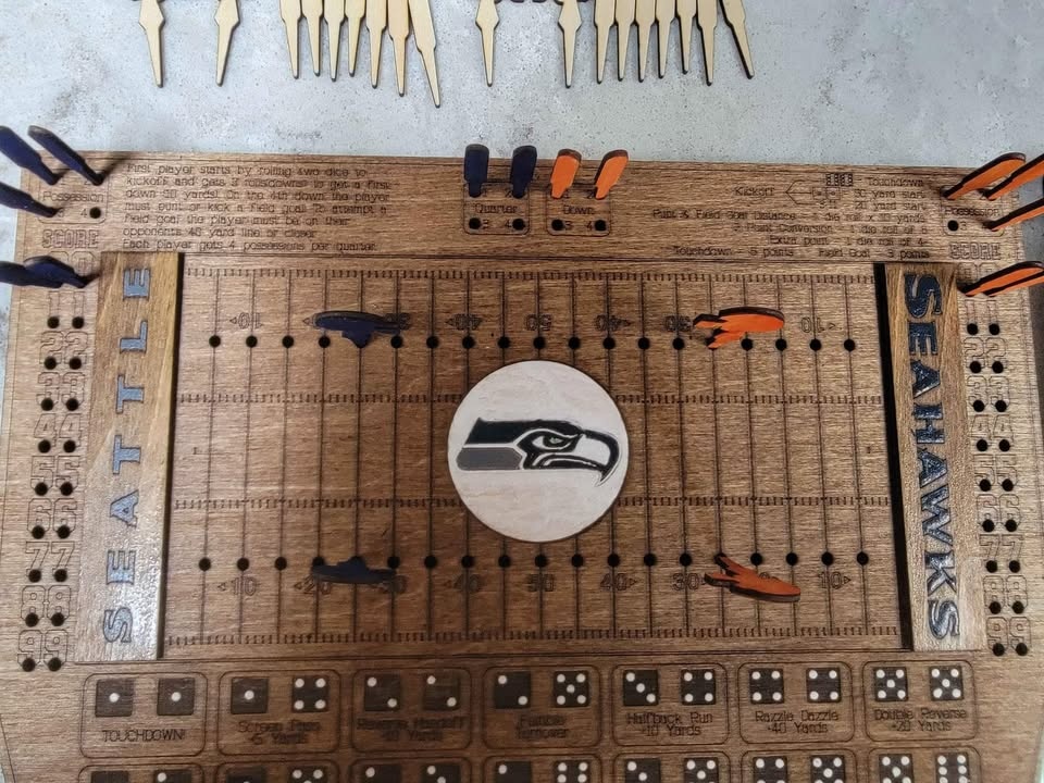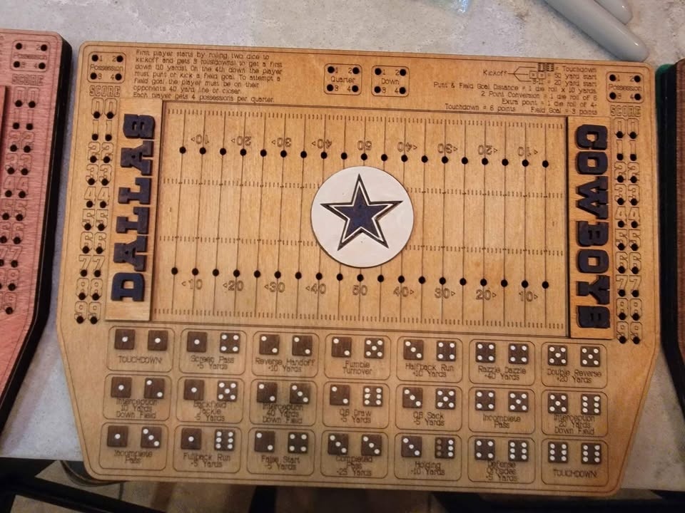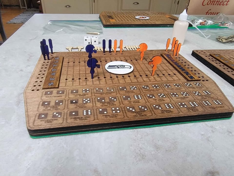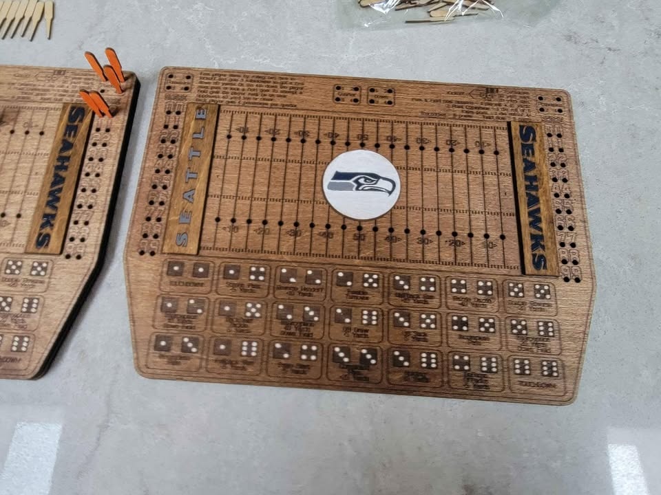 Laser Cut/Engraved Dice Football Board Game