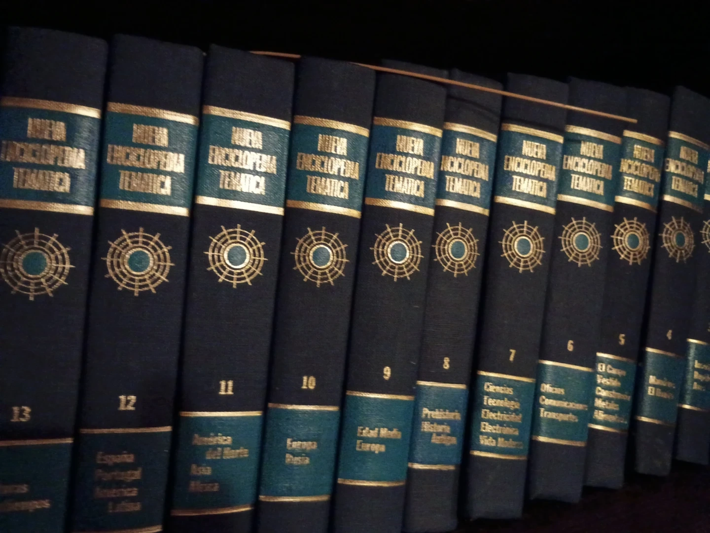 This is a collection of Nueva Enciclopedia Tematica books. The books cover various subjects, including history, science, and geography. They are hardcover and feature gold lettering on the spines. They're great for research or general knowledge.