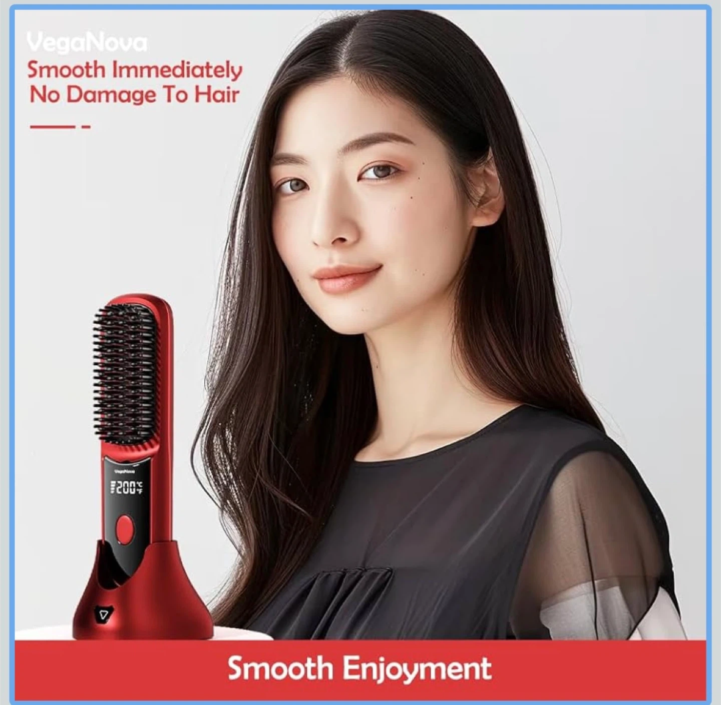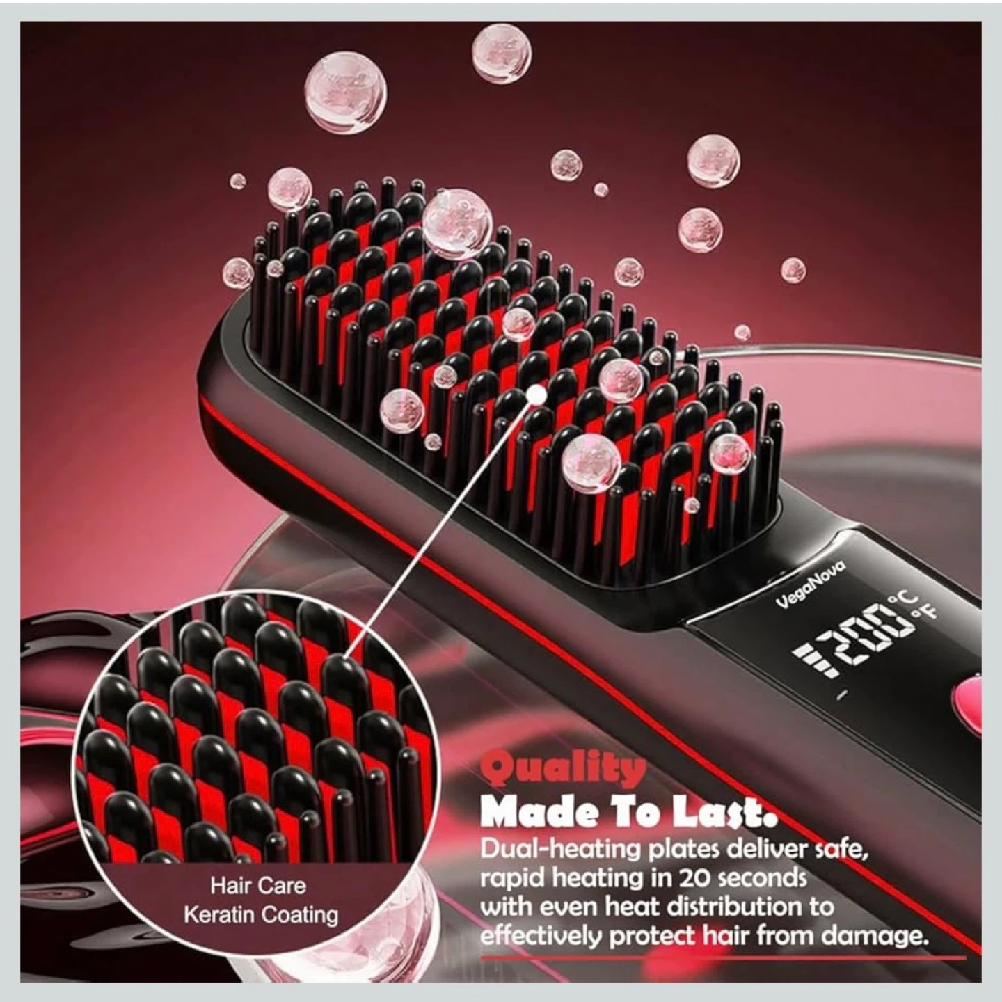 NEW - VegaNova Cordless Hair Straightening Brush (Red)