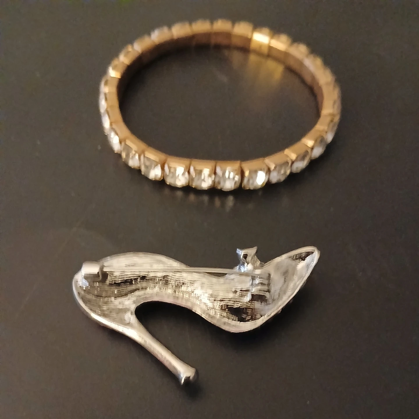 Rhinestone Bracelet and High Heel Brooch Set