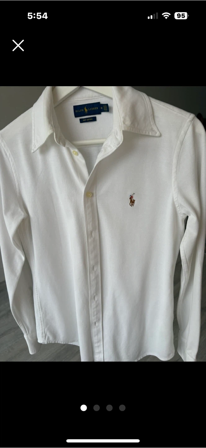 Selling a Ralph Lauren Knit shirt in size medium. It's a crisp white colour and in great condition! Perfect for a smart casual look.