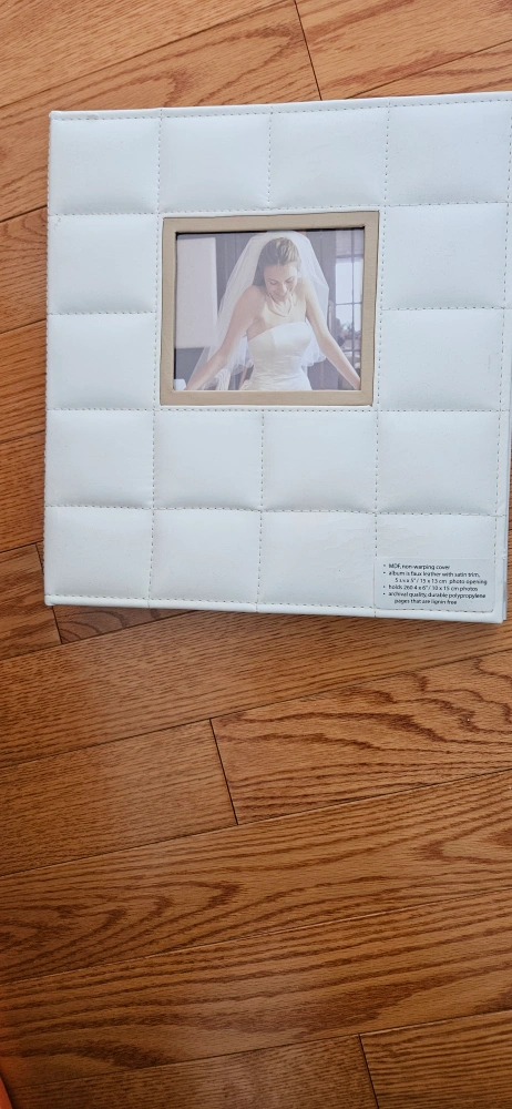 Selling a white, quilted photo album. The cover is MDF, non-warping cover. The album is faux leather with satin trim and holds 260 4x6" / 10x15 cm photos. It also has archival quality, durable polypropylene pages that are lignin free