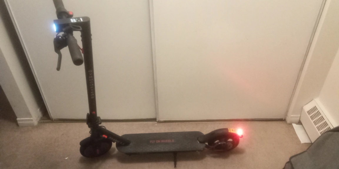92Electric scooter. Great for commuting or getting around town. Has a front and rear light, as well as a digital display showing speed and battery life.