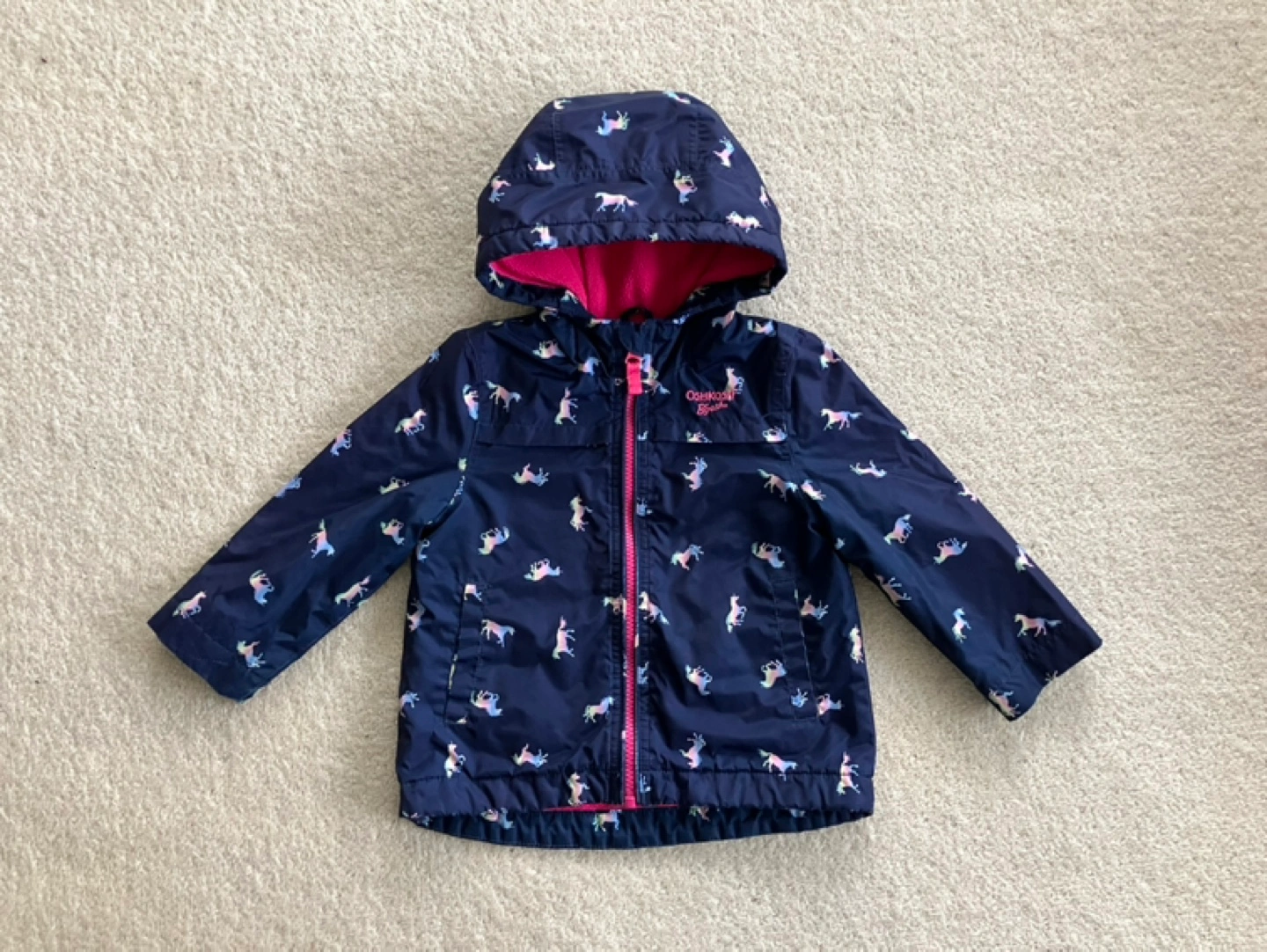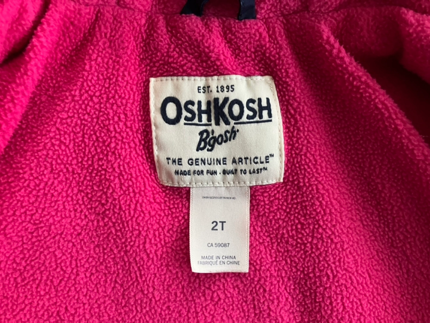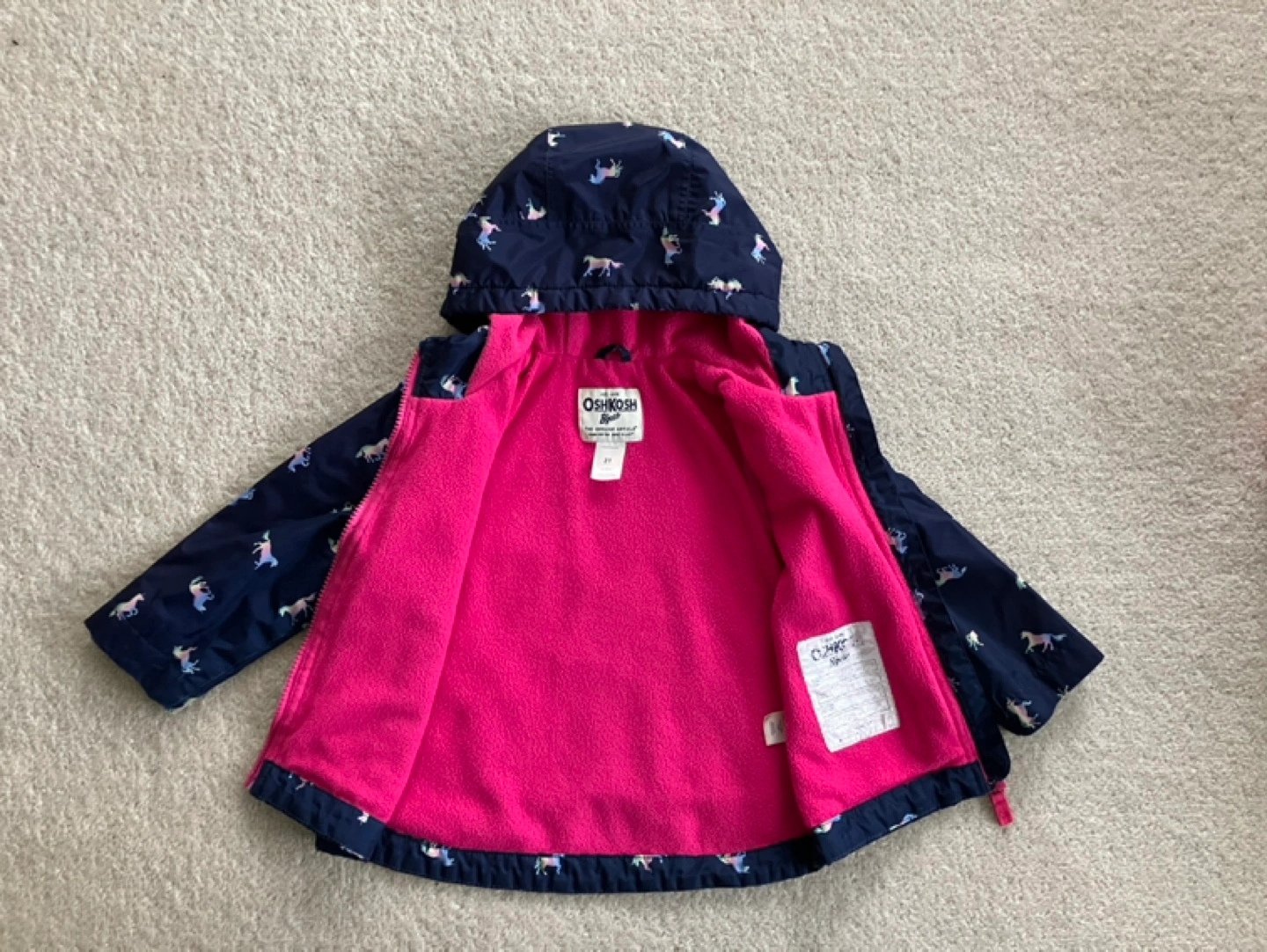 90Great little OshKosh rain coat. The fleece lining keeps little ones nice and warm. This one is in great condition with only minor signs of wear.. Size: 2T NS/NP