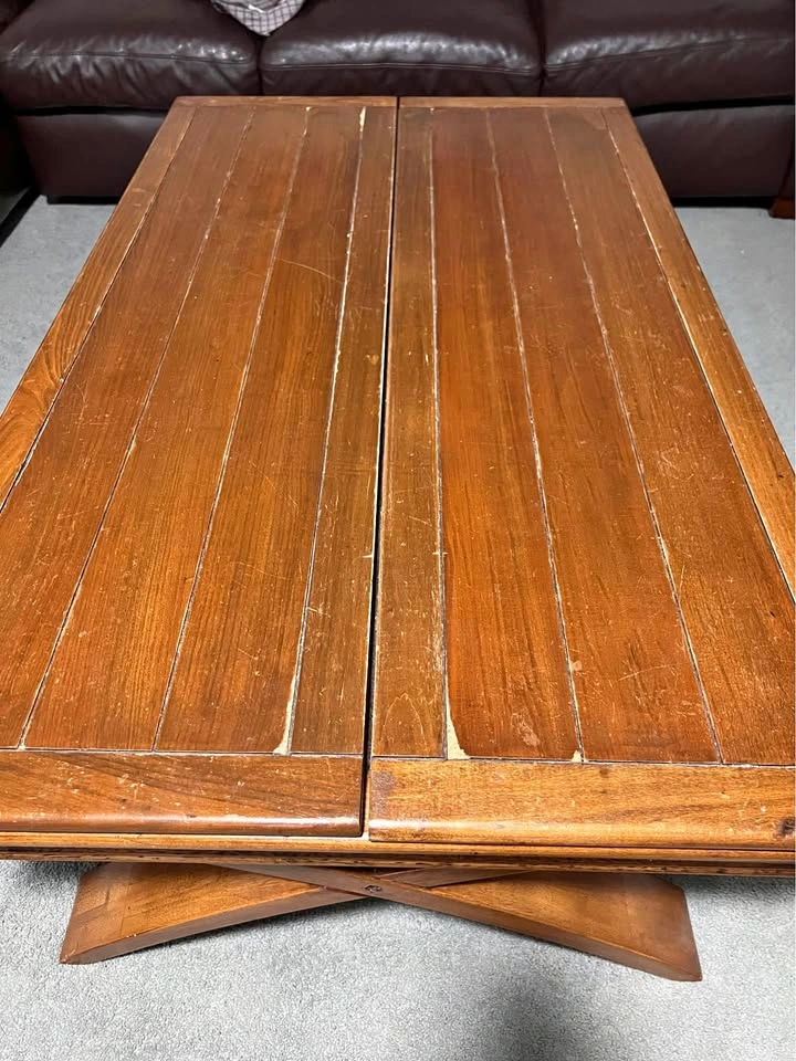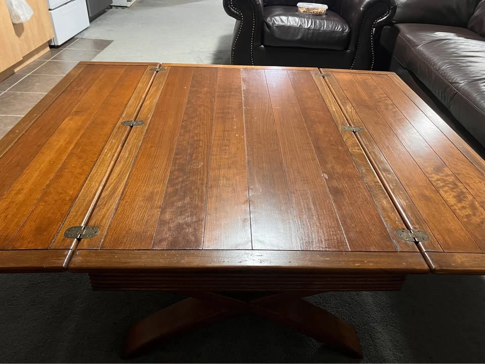 17Needs touch ups and paintings. This is a part of 3 piece set there is also a table and end table ad separate from this. $300 for 3-piece set (table, end table). Perfect for small spaces. Closed dimensions: 50”x 30”. Opens to 50”x60”. Sturdy structure, needs touch-ups and painting.