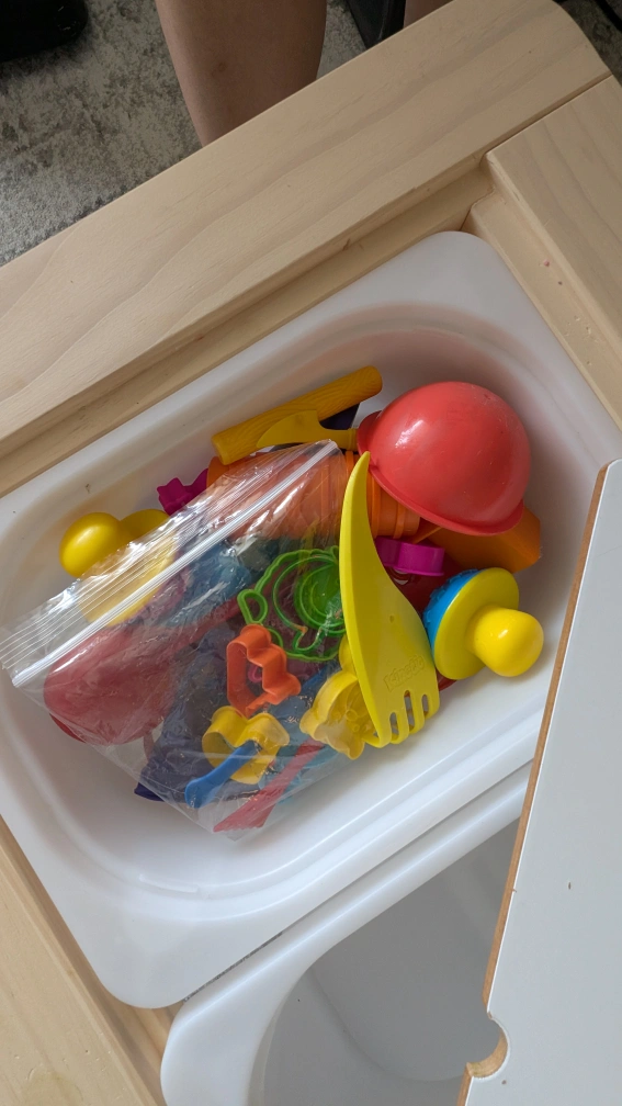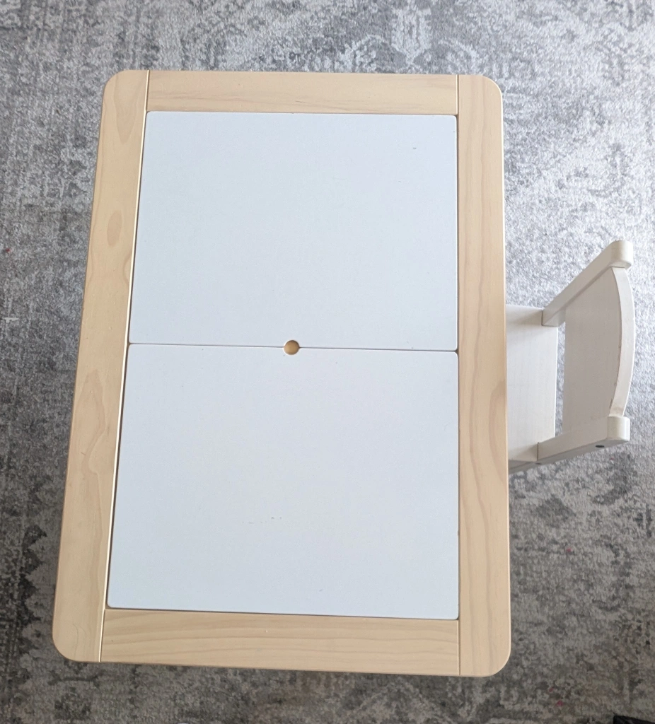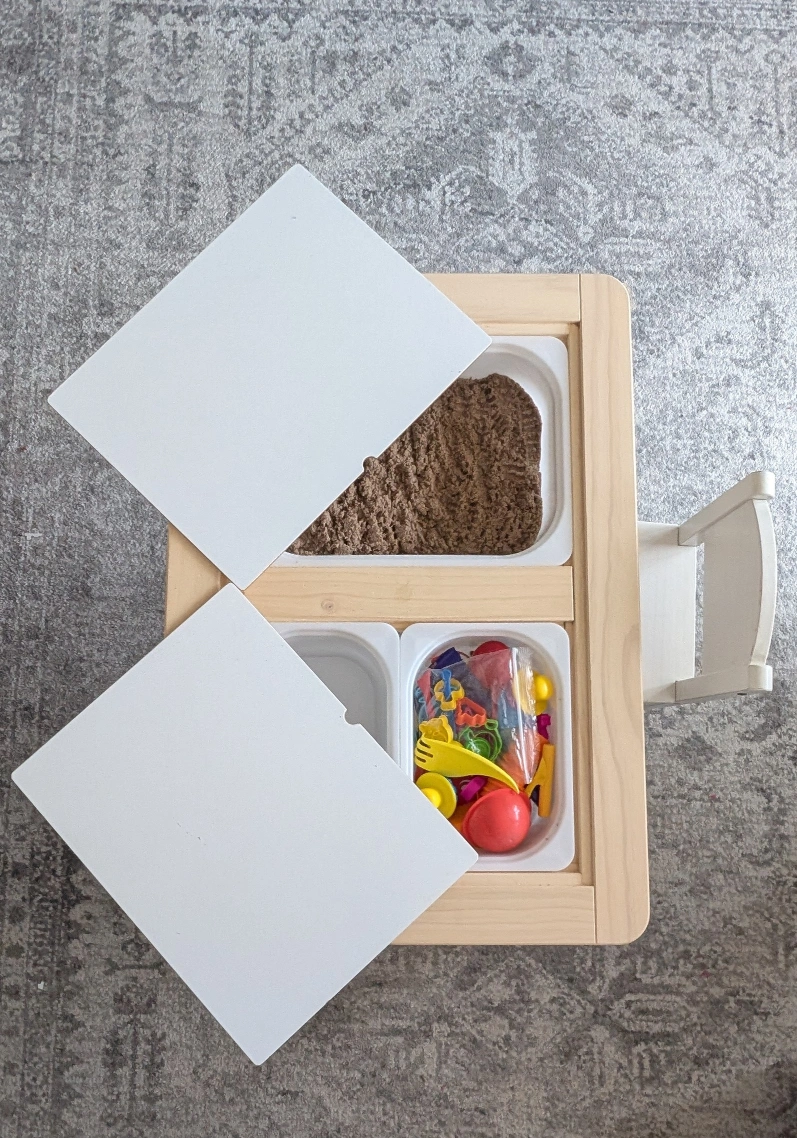 10Selling a cute little table and chair set, perfect for kids! It's white and in great condition. It also comes with some fun accessories like sand and toys! The flisat table comes with Trofast bins and the chair is also from Ikea. Kinetic sand and toys included. smoke and pet free home pickup near Dixie and Bloor