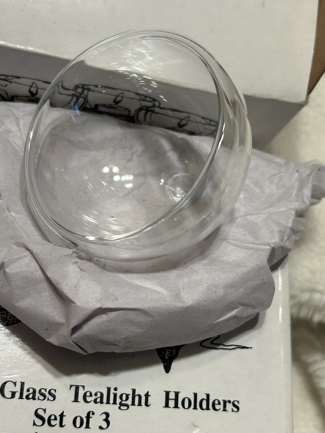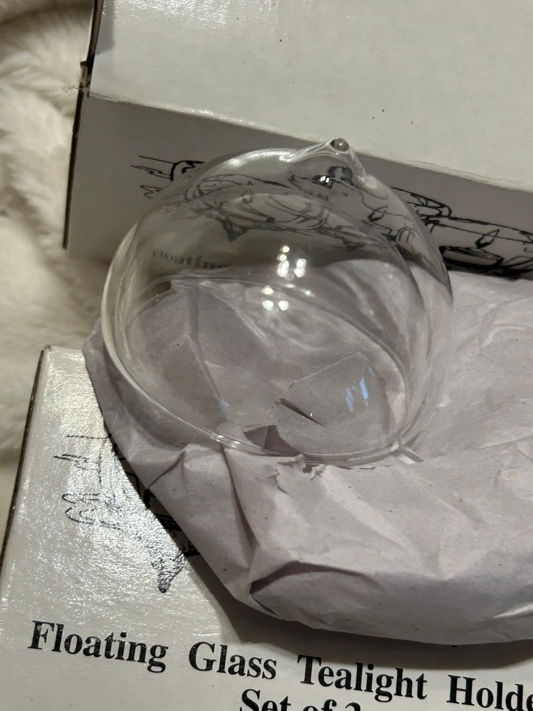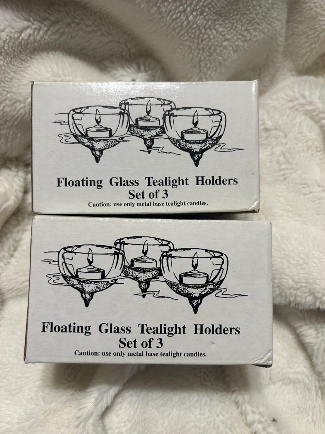 354Selling a set of three floating glass tealight holders! They are in excellent condition and come in their original packaging