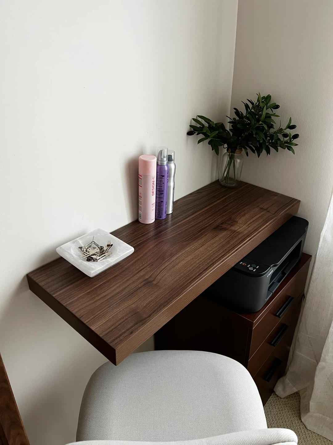 Floating Shelf, in walnut. This one is being used but I have another one that’s extra. I use mine as a desk. Can be used in the bathroom, hallway etc. 36” W x 12.75” D x 2” H 📍Ajax Porch Pick Up