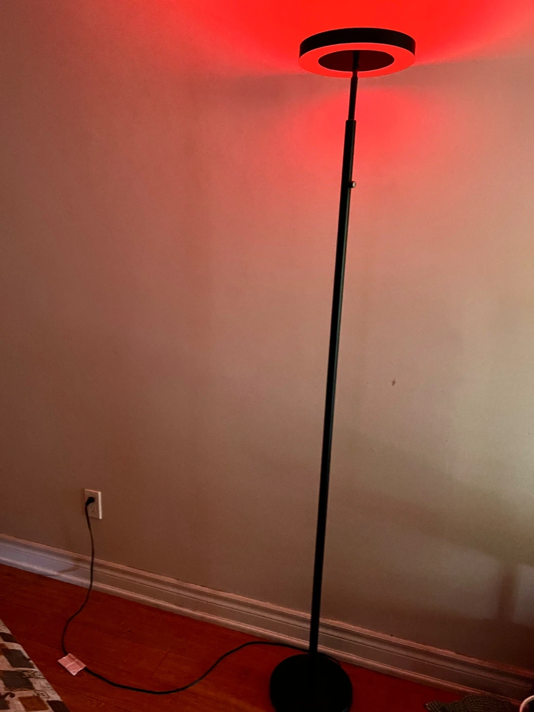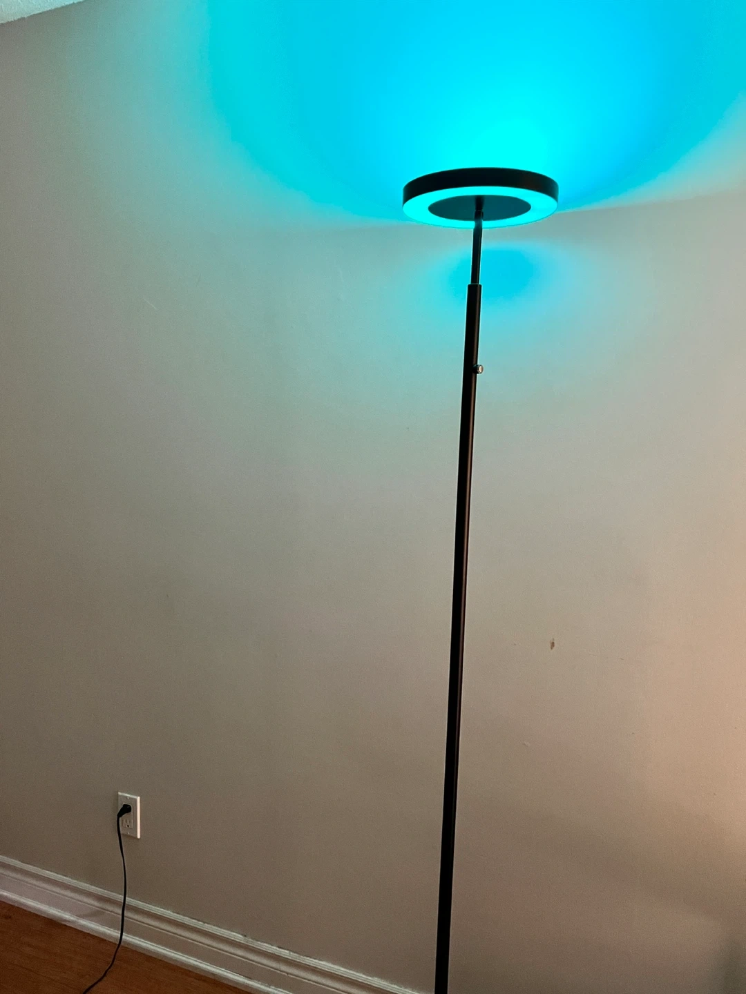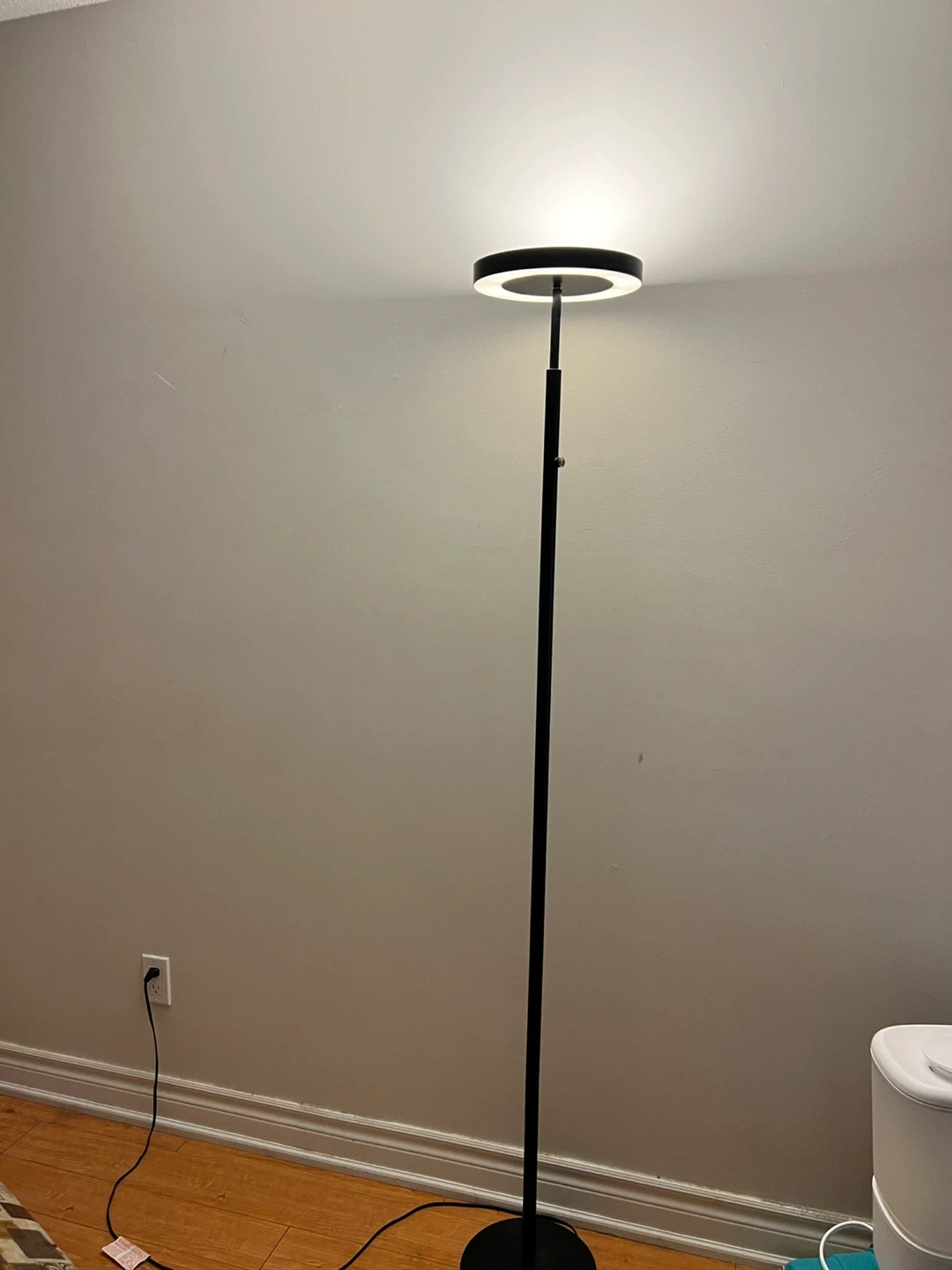 29Selling a sleek black ring floor lamp! It comes with a remote control so you can easily change the colours. It's in great condition and would look great in any room!
