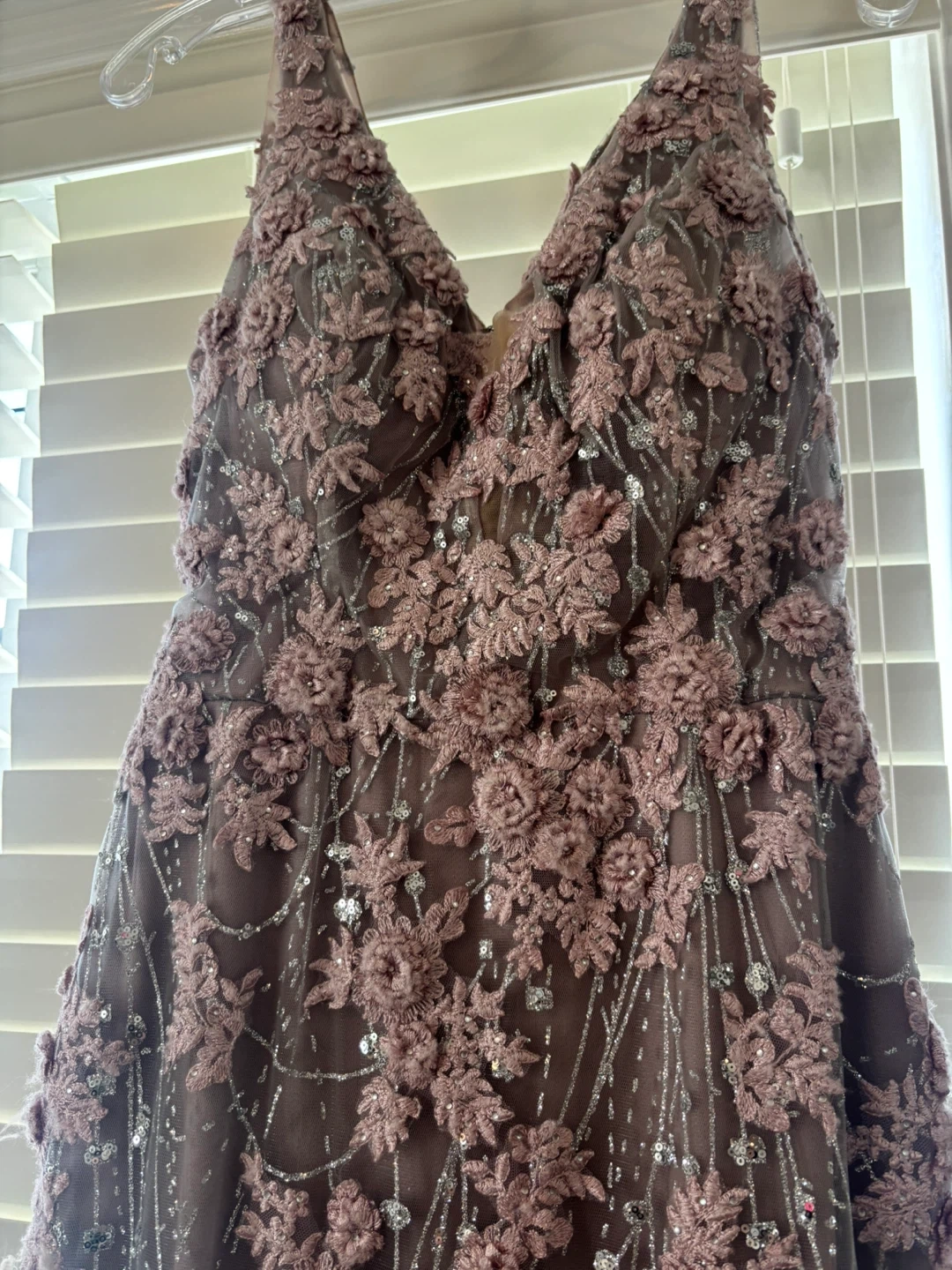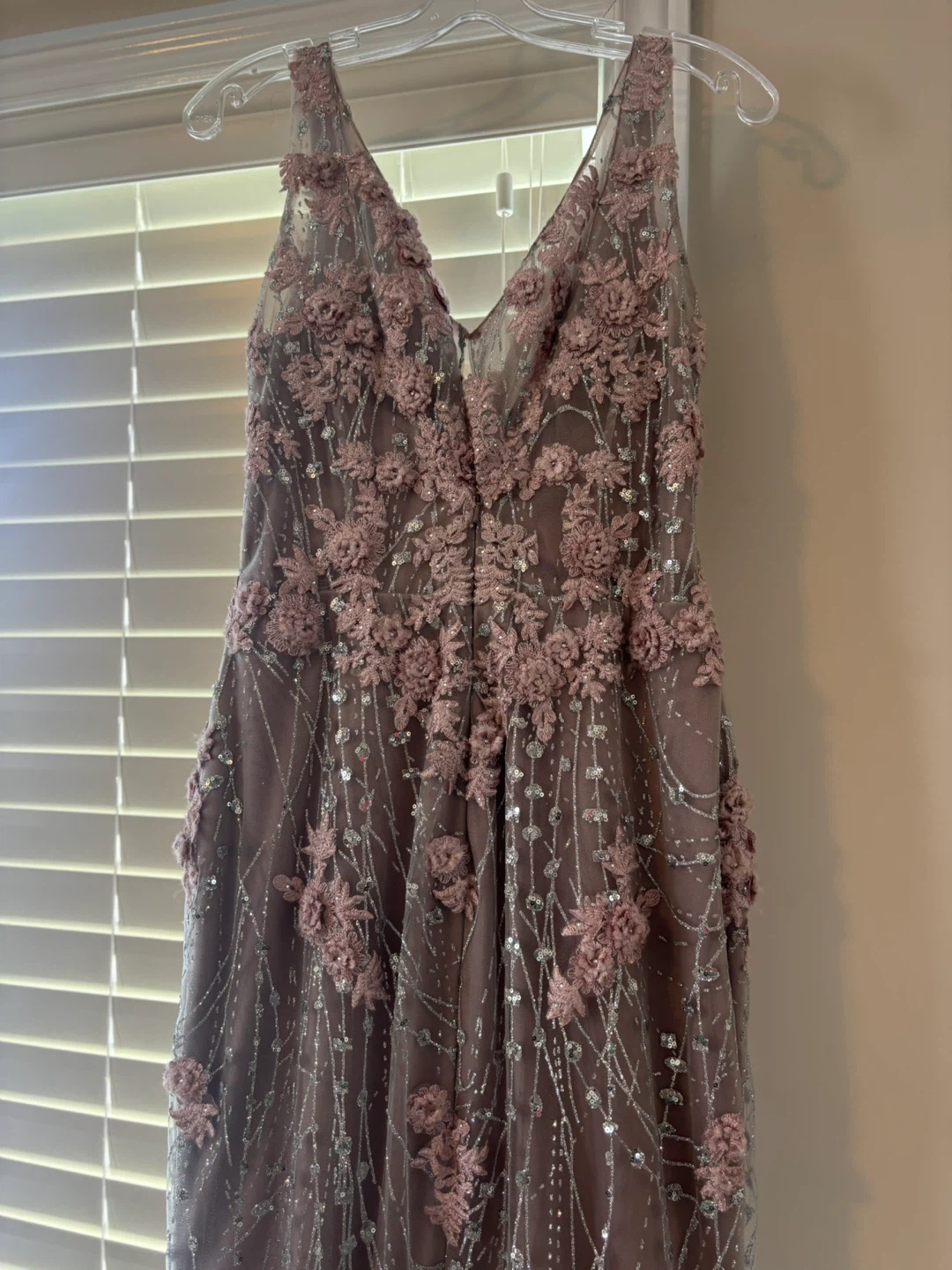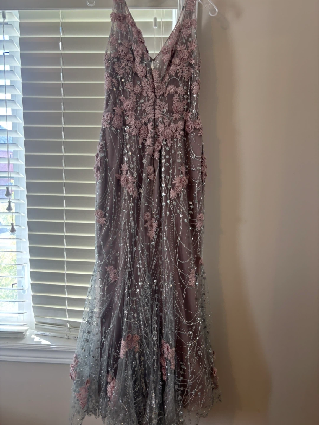 10Selling a beautiful formal dress with intricate floral appliqué detailing! The dress features a V-neckline and a flattering silhouette. Perfect for a special occasion! 2 dresses size 10.