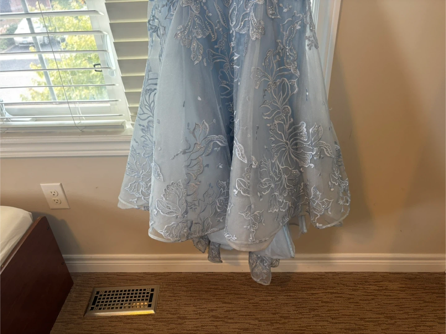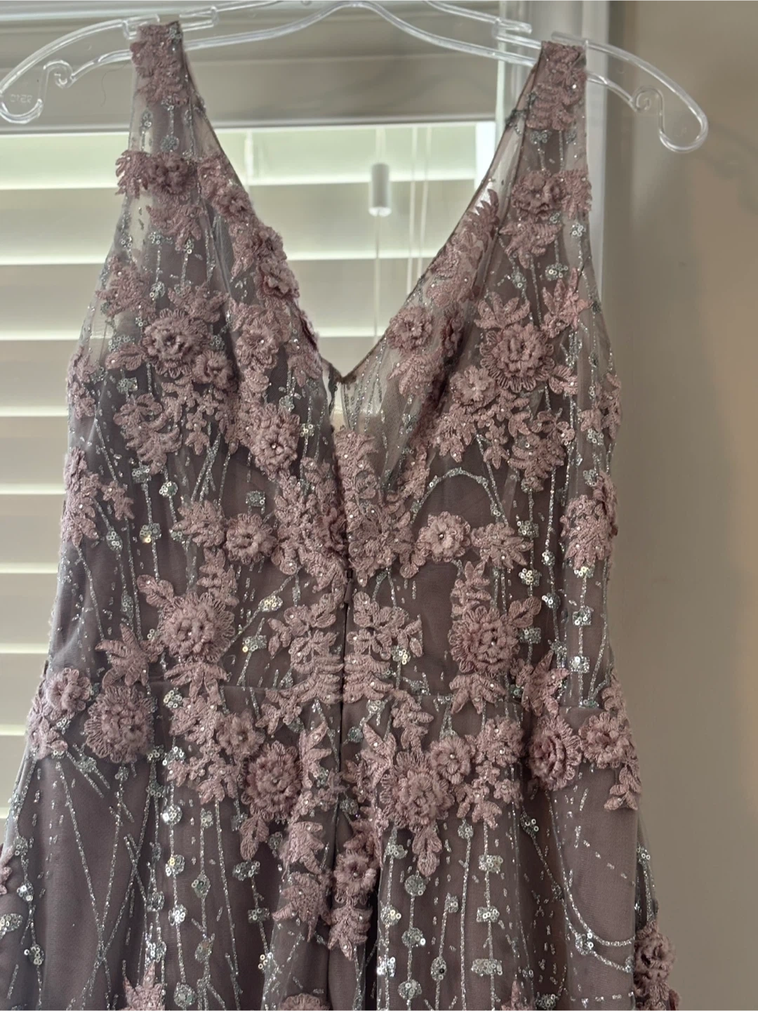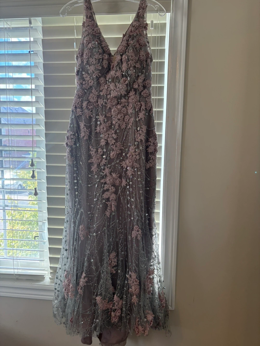 10Selling a beautiful formal dress with intricate floral appliqué detailing! The dress features a V-neckline and a flattering silhouette. Perfect for a special occasion! 2 dresses size 10.
