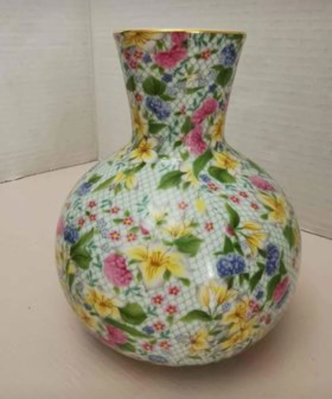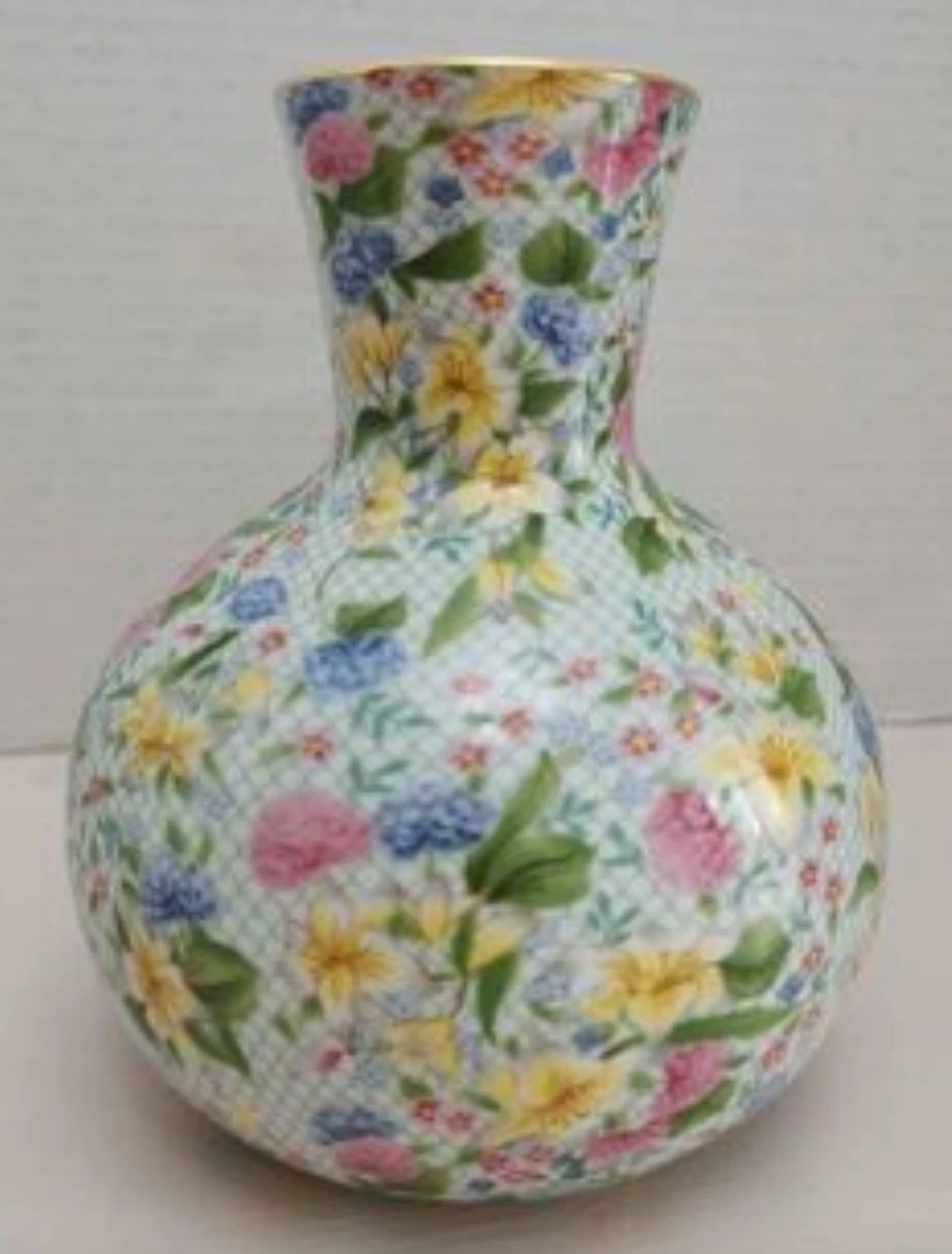 25Two’s Company , FLORAL CHINTZ Bud Vase With Gold Rim - Super Cute