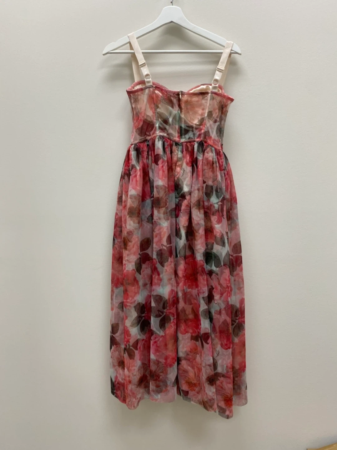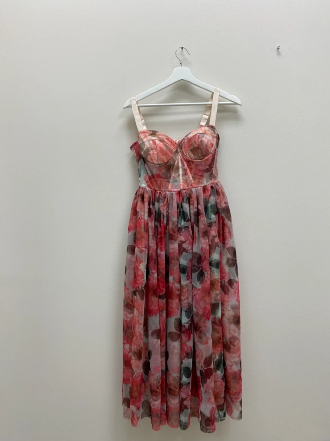 Beautiful floral corset maxi dress, perfect for a summer day or special occasion! The dress features a flattering corset bodice and a flowing maxi skirt. The floral pattern is vibrant and eye-catching. It's in great condition and ready for a new home