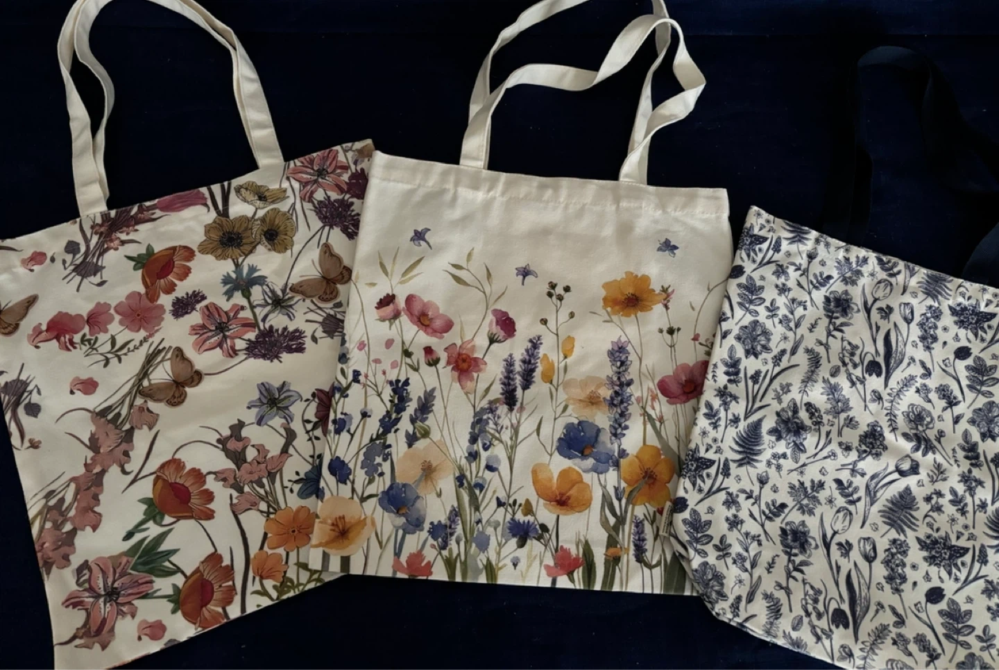 5Zipper and snap totes $6 each; blue floral tote $4. ✨ Highlights Cotton-blend material: Soft to the touch, lightweight, and durable—designed for everyday use. 💕 A Simple Way to Brighten Your Day Charming without being overdone—these floral tote bags bring both beauty and functionality to your everyday life. Perfect as a thoughtful gift or a delightful treat for yourself.