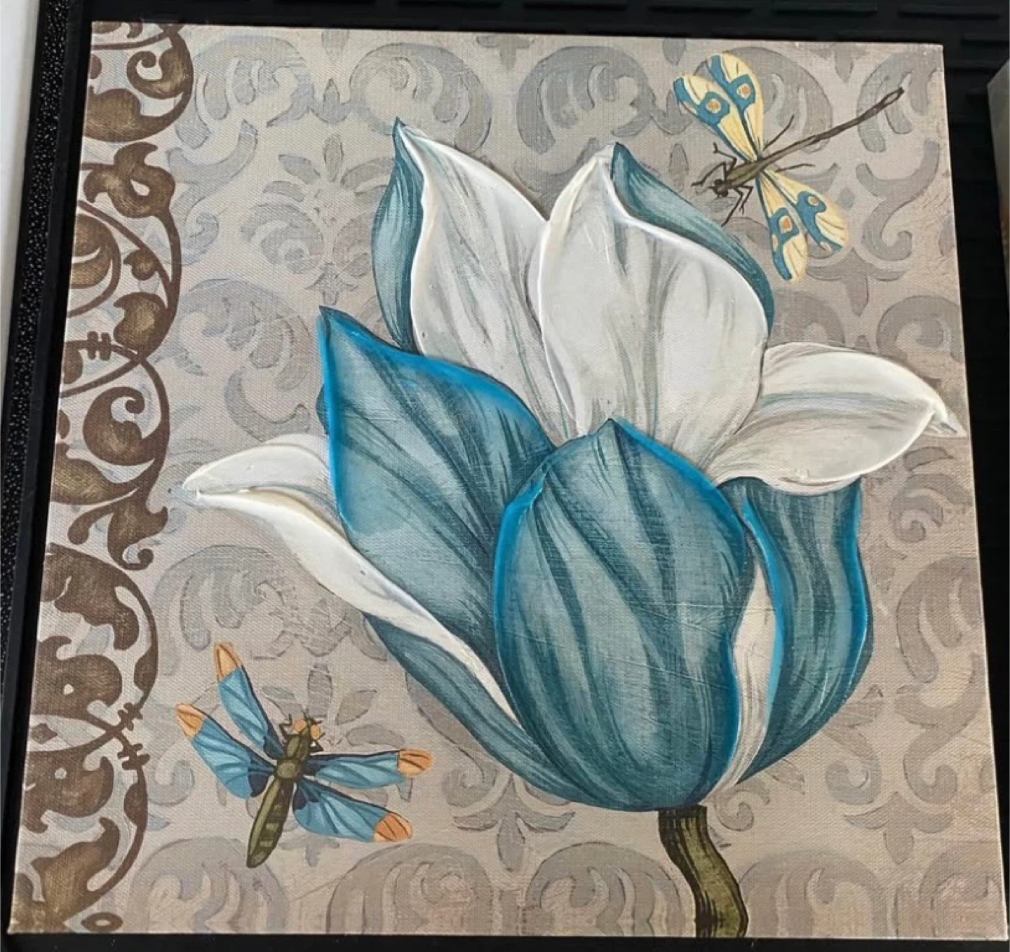 Selling a lovely piece of embossed floral wall art. The artwork features a beautiful flower design with butterflies, adding a touch of nature to any room. It's brand new and ready to brighten up your space! The dimensions of both are 12 x12 inches