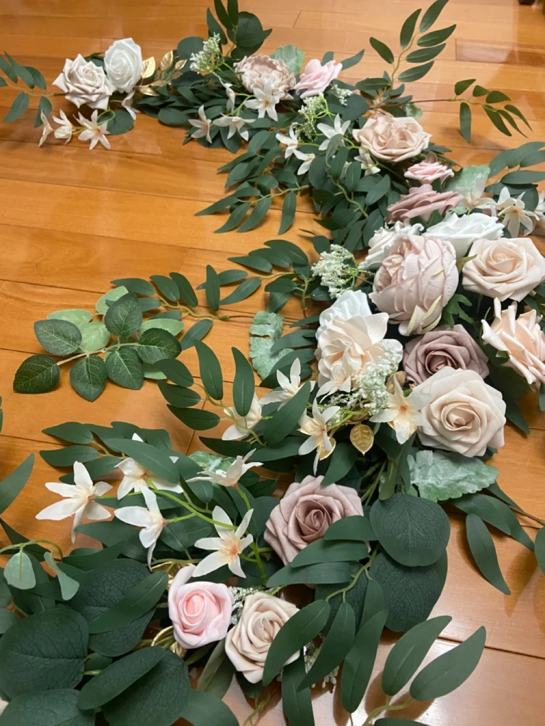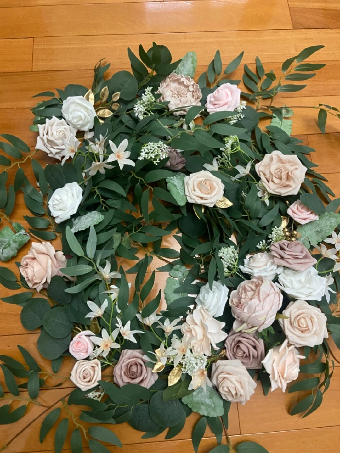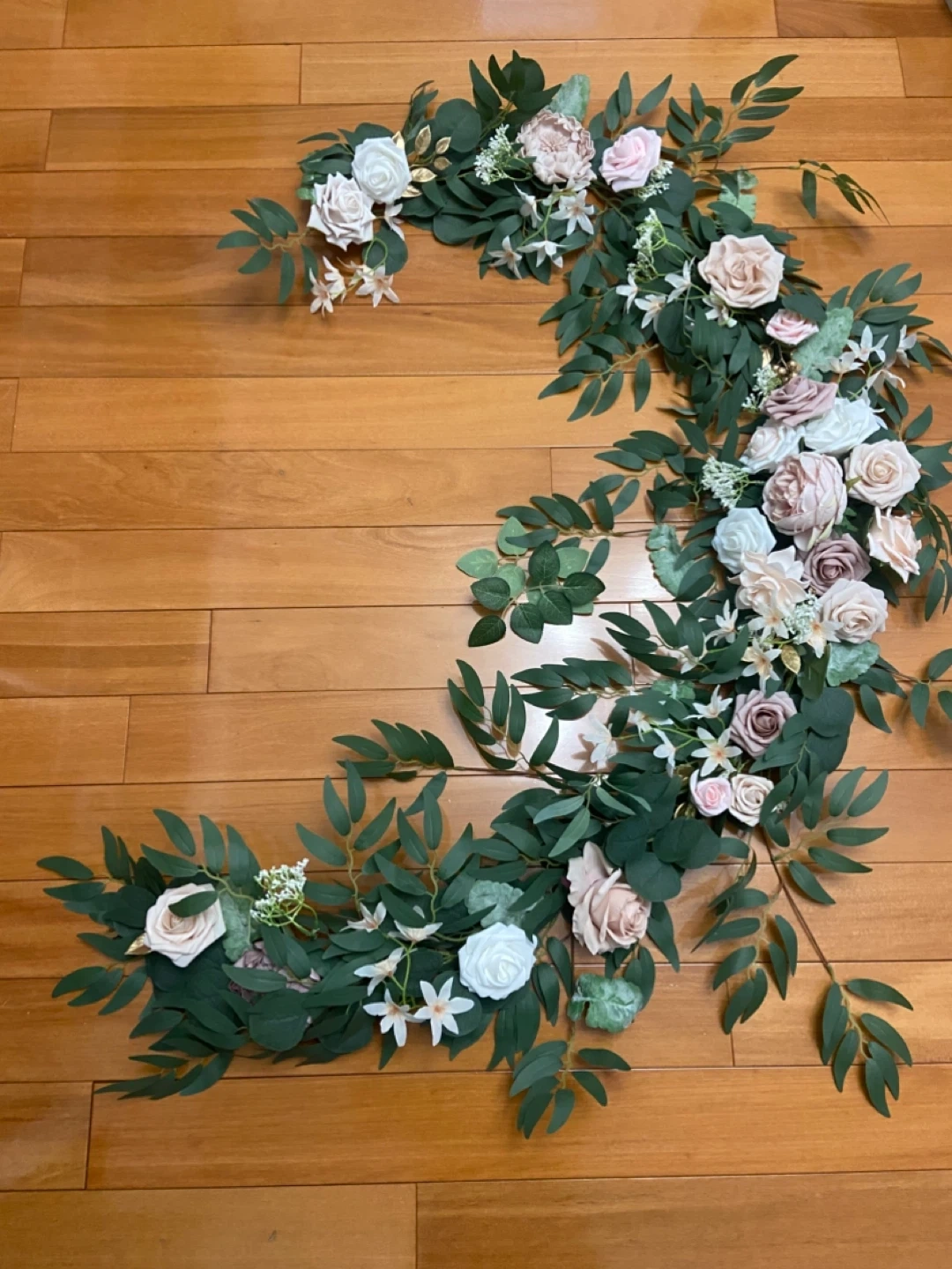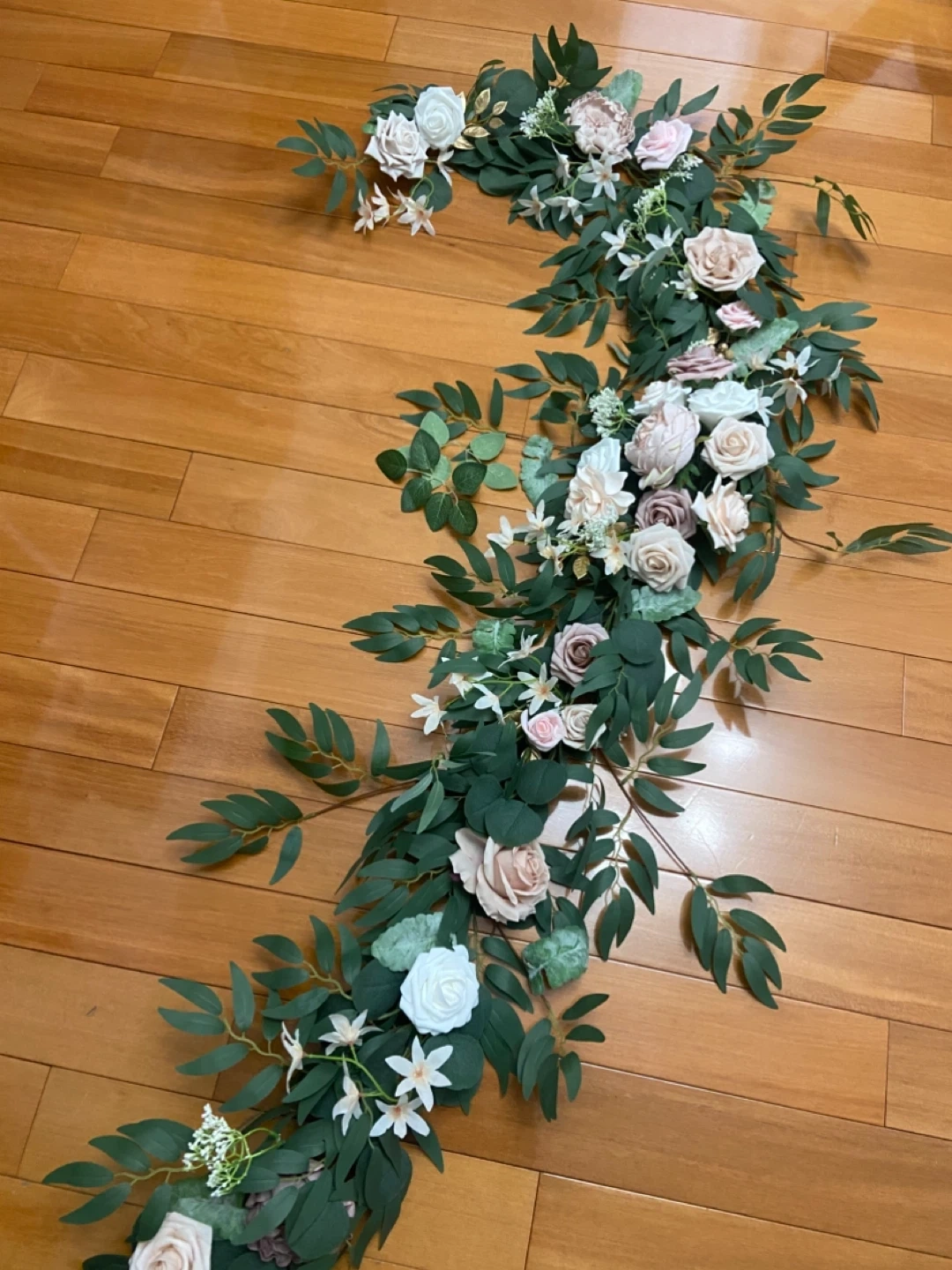 Beautiful floral garland featuring roses and lush greenery! Perfect for adding a touch of elegance to your wedding, party, or home decor.