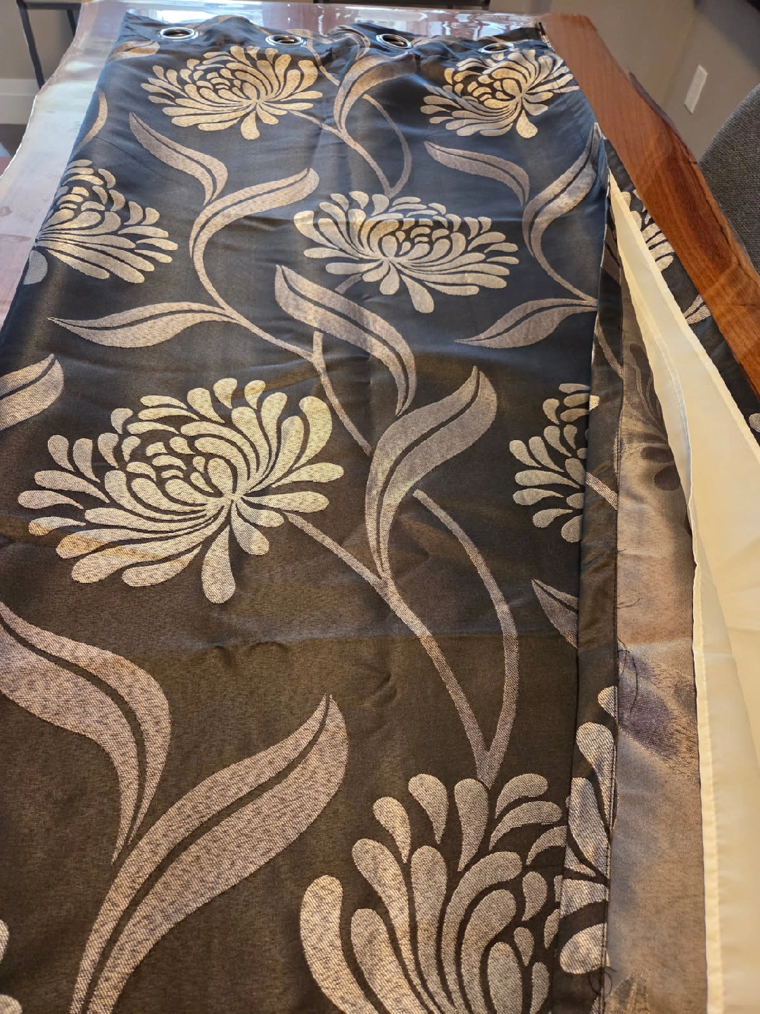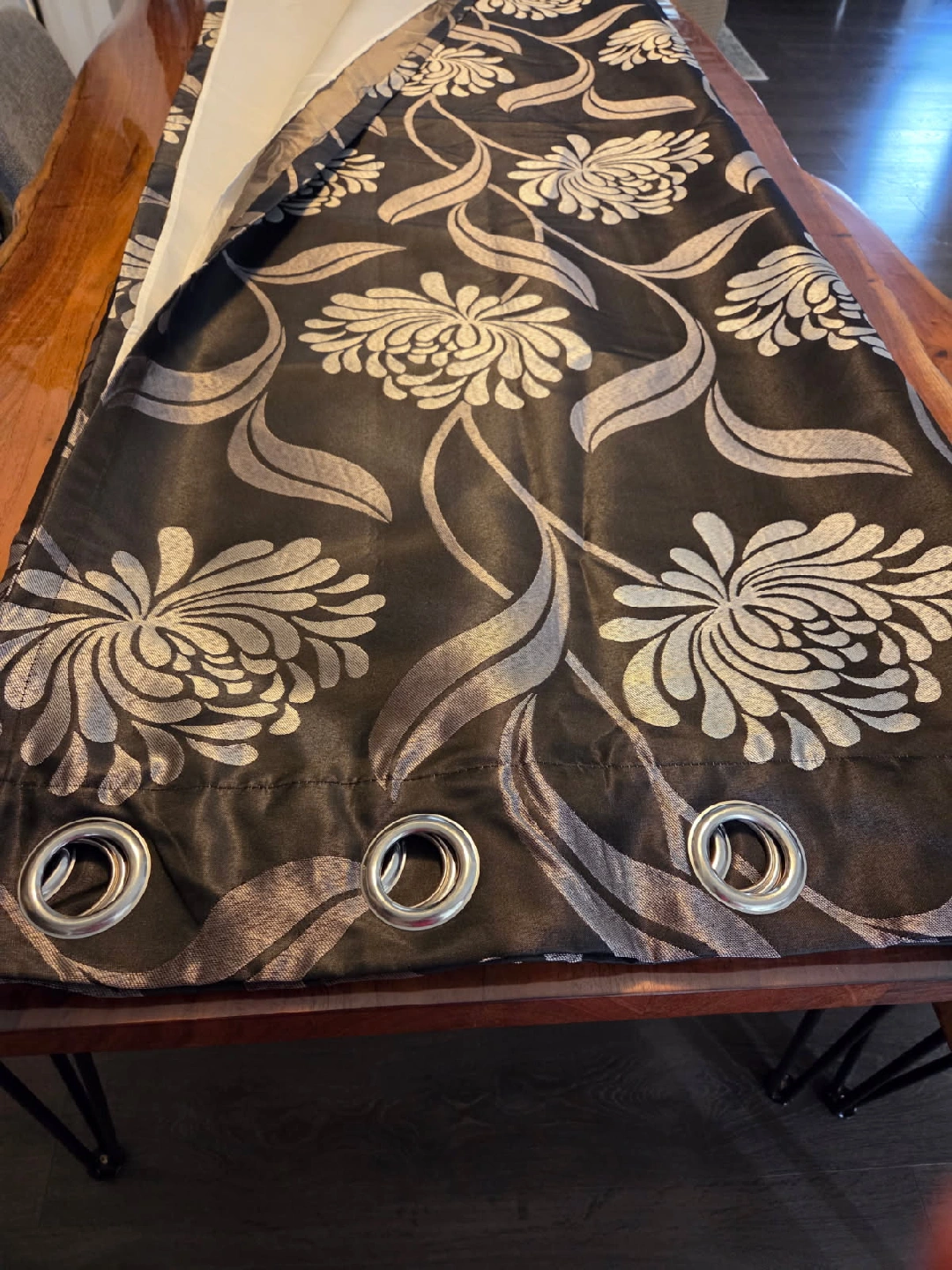 Selling a lovely curtain with a beautiful floral pattern! The colours are black and silver, which would add a touch of elegance to any room. It's in great condition and ready to find a new home. Beautiful shower curtain with polyester lining. 107"wide × 84" length $ 50.00
