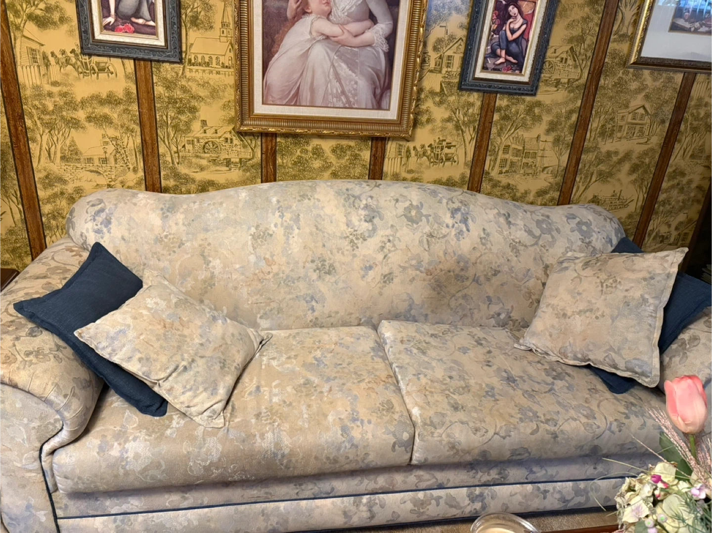 10Selling a comfy sofa and love seat with a lovely floral pattern! It comes with the pillows shown in the pictures. Minor staining. Great for cottage or trailer