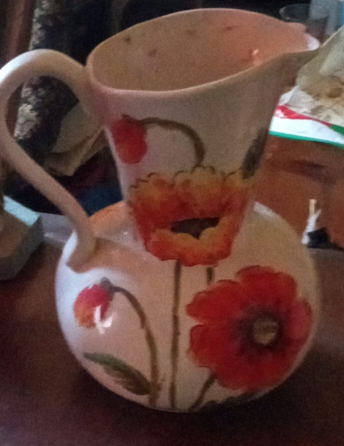 Selling a charming pitcher with a lovely floral design. It's in great condition and would look wonderful on any table or shelf!