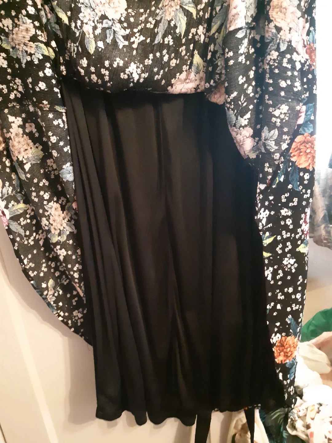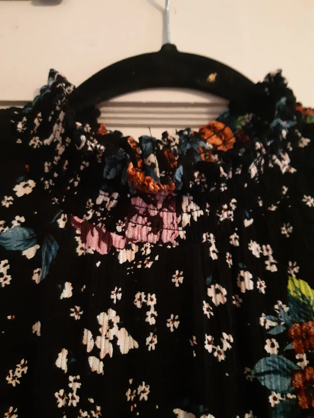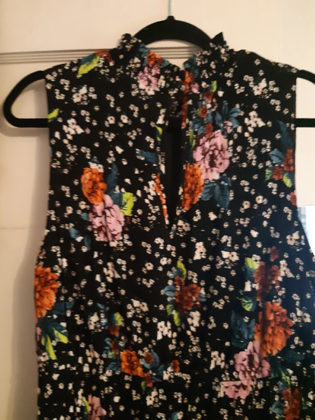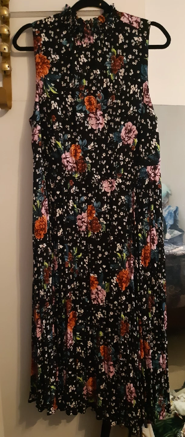 This is a cute floral print dress. It features a black background with a colourful floral pattern. Great for summer or beautiful at you Christmas dinner. Torrid size 2