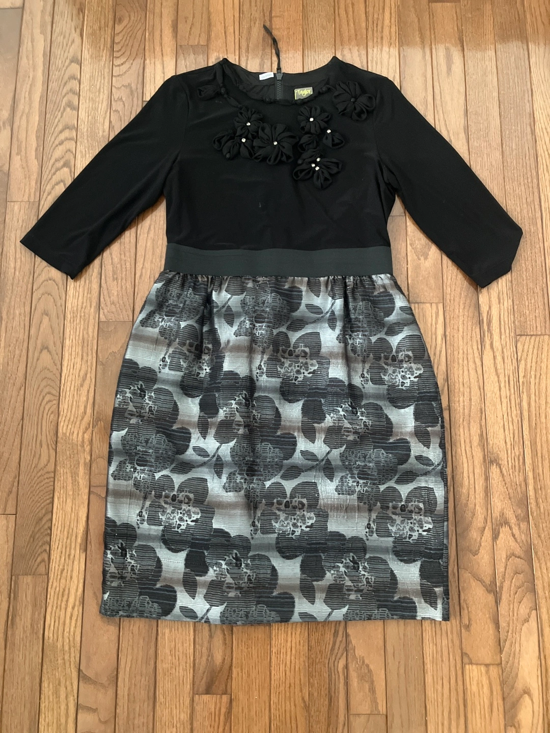 Worn once. Dress has a Silky black top and structured floral print skirt. It's a size 10 and in great condition.