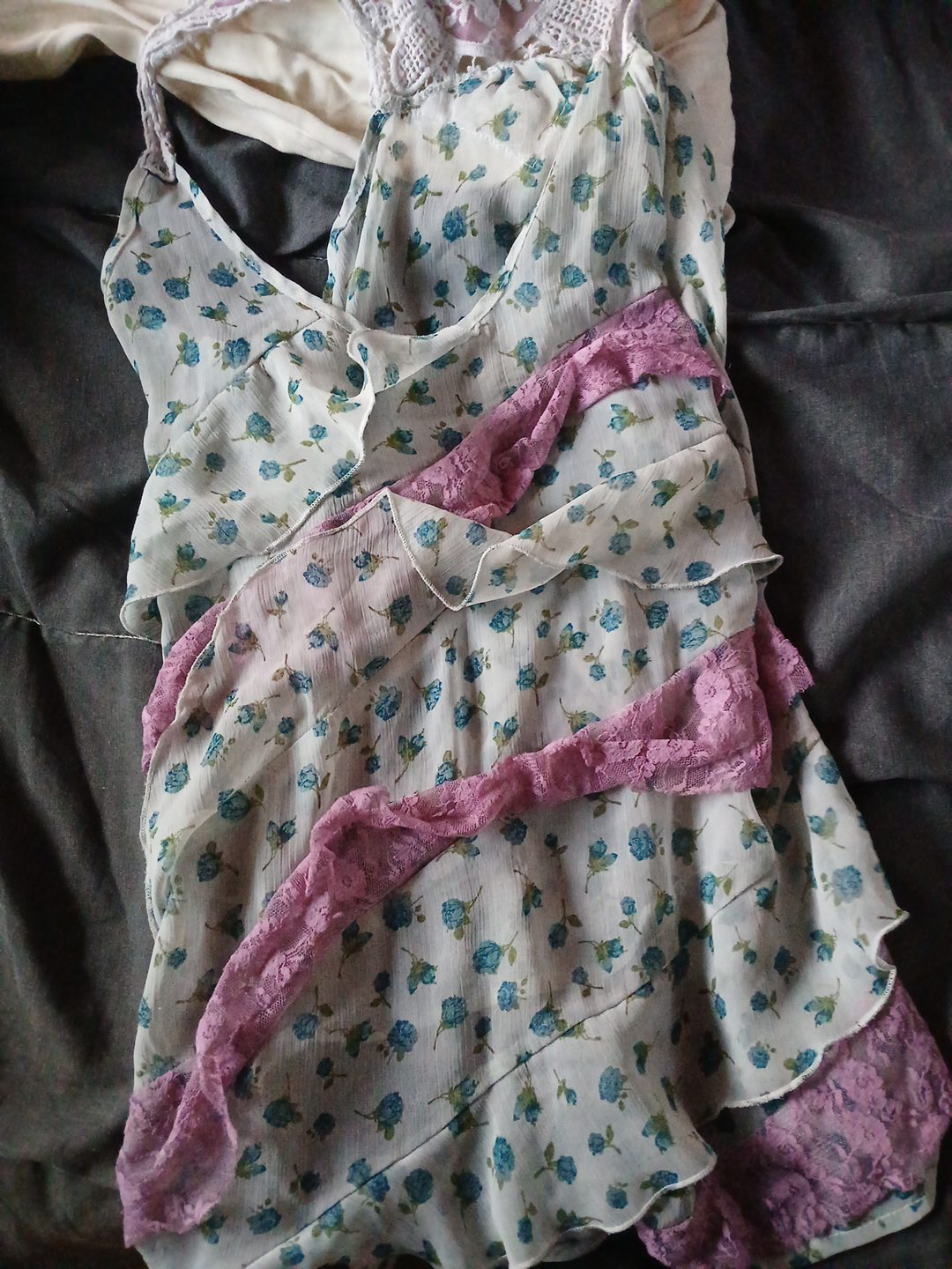 15Cute floral print dress with delicate lace trim! It's in great condition and ready for a new home. Perfect for a sunny day out or a special occasion