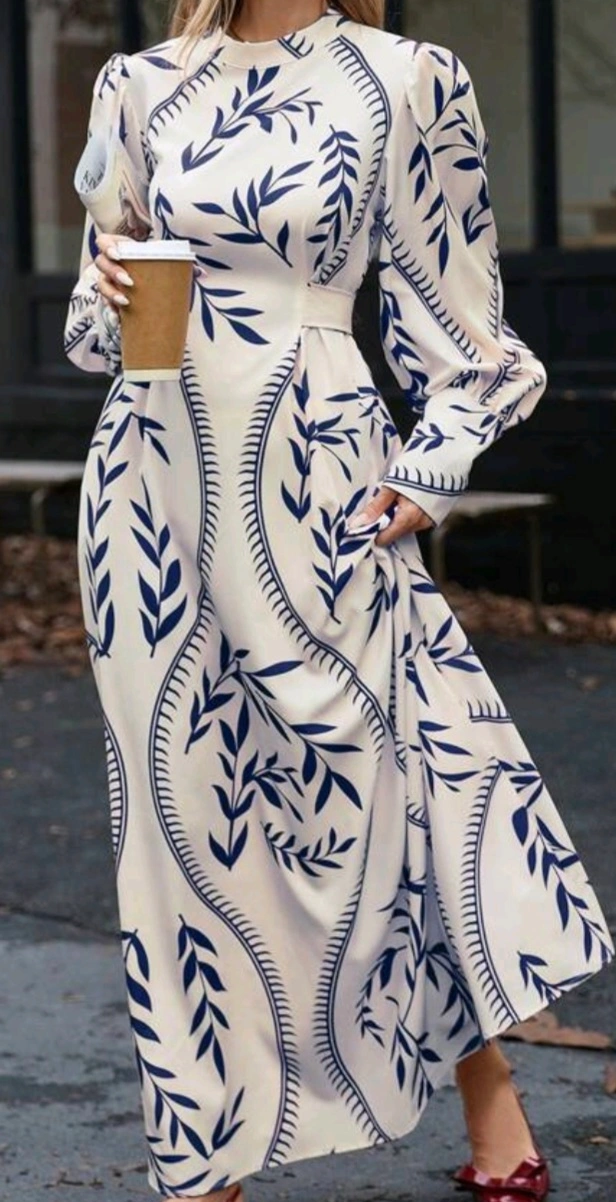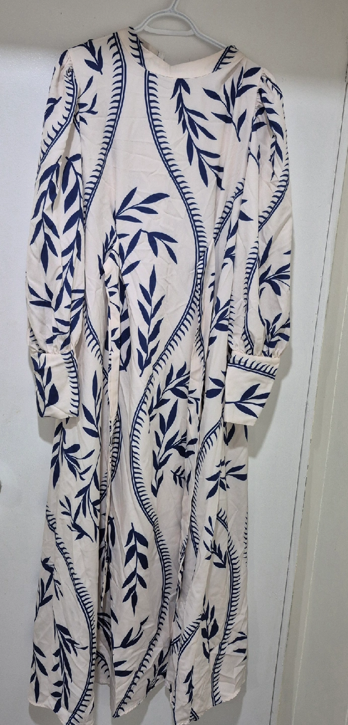18This is a lovely maxi dress with a unique floral print. It has long sleeves and would be perfect for a special occasion or just feeling a little fancy. It's in great condition and ready for a new home
