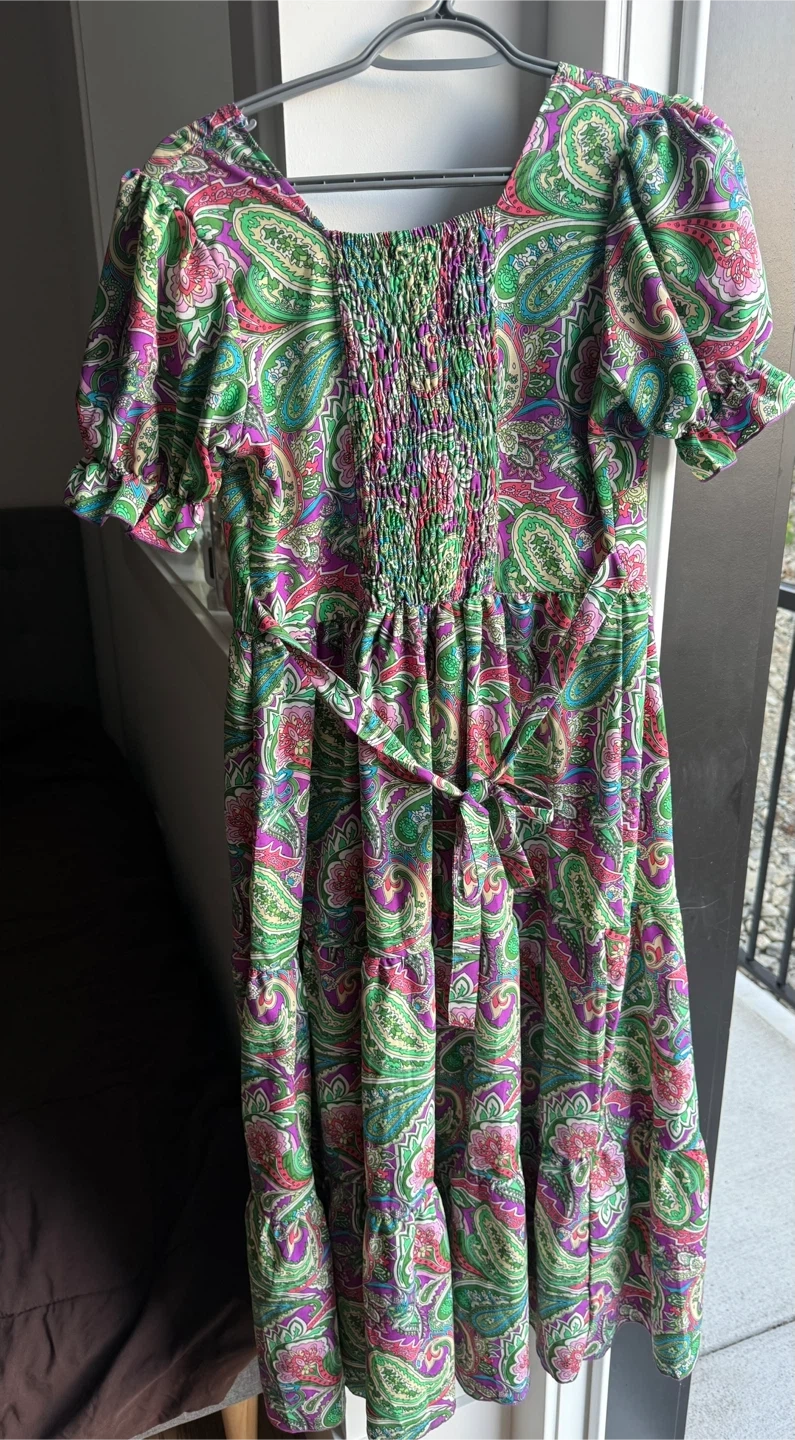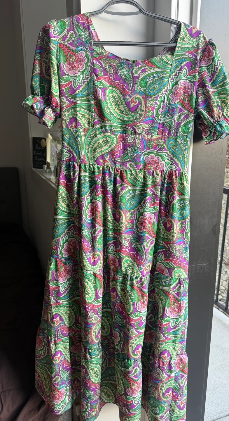 The dress is a size medium and has a comfortable, flowy fit.