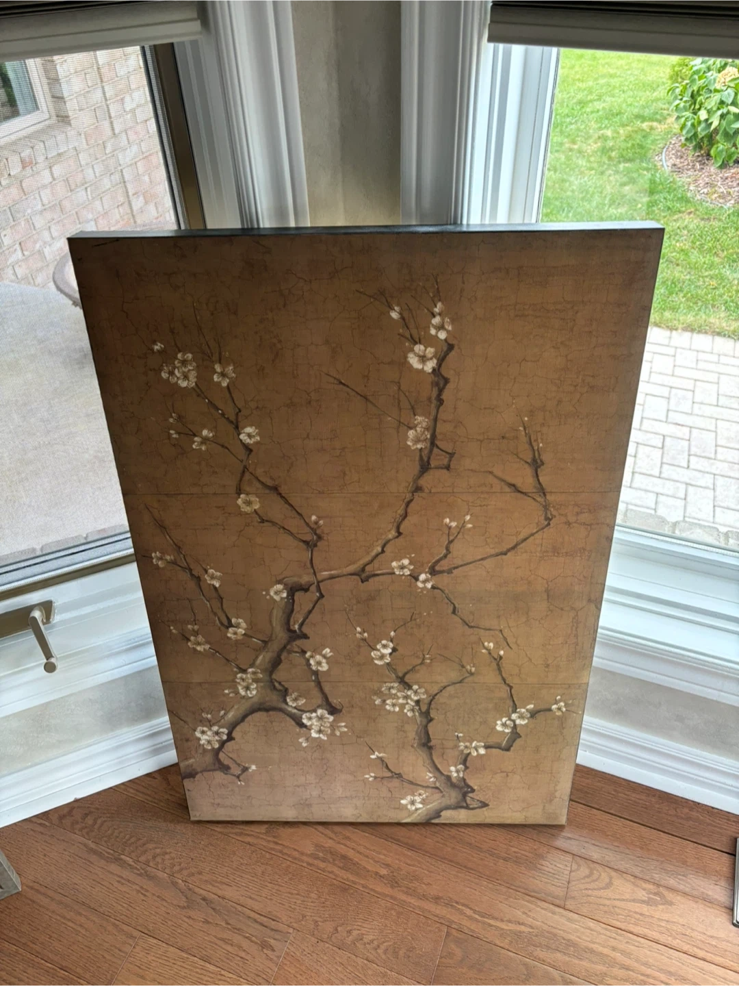10Selling a lovely canvas print features a beautiful floraldesign on a brown/gold background. Perfect for adding a touch of elegance to any room!